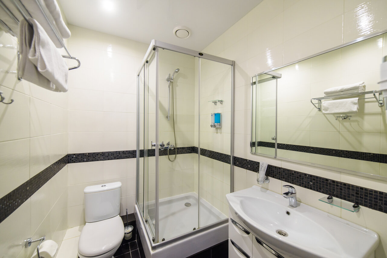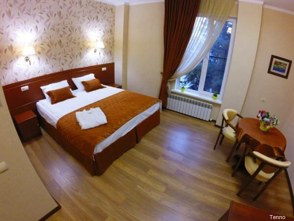 Уютный номер для двоих со всеми удобствами. Дизайнерская мебель, ортопедические матрасы, гипоалергенное белье, халаты, тапочки, фен и всё, что необходимо для комфортного отдыха.