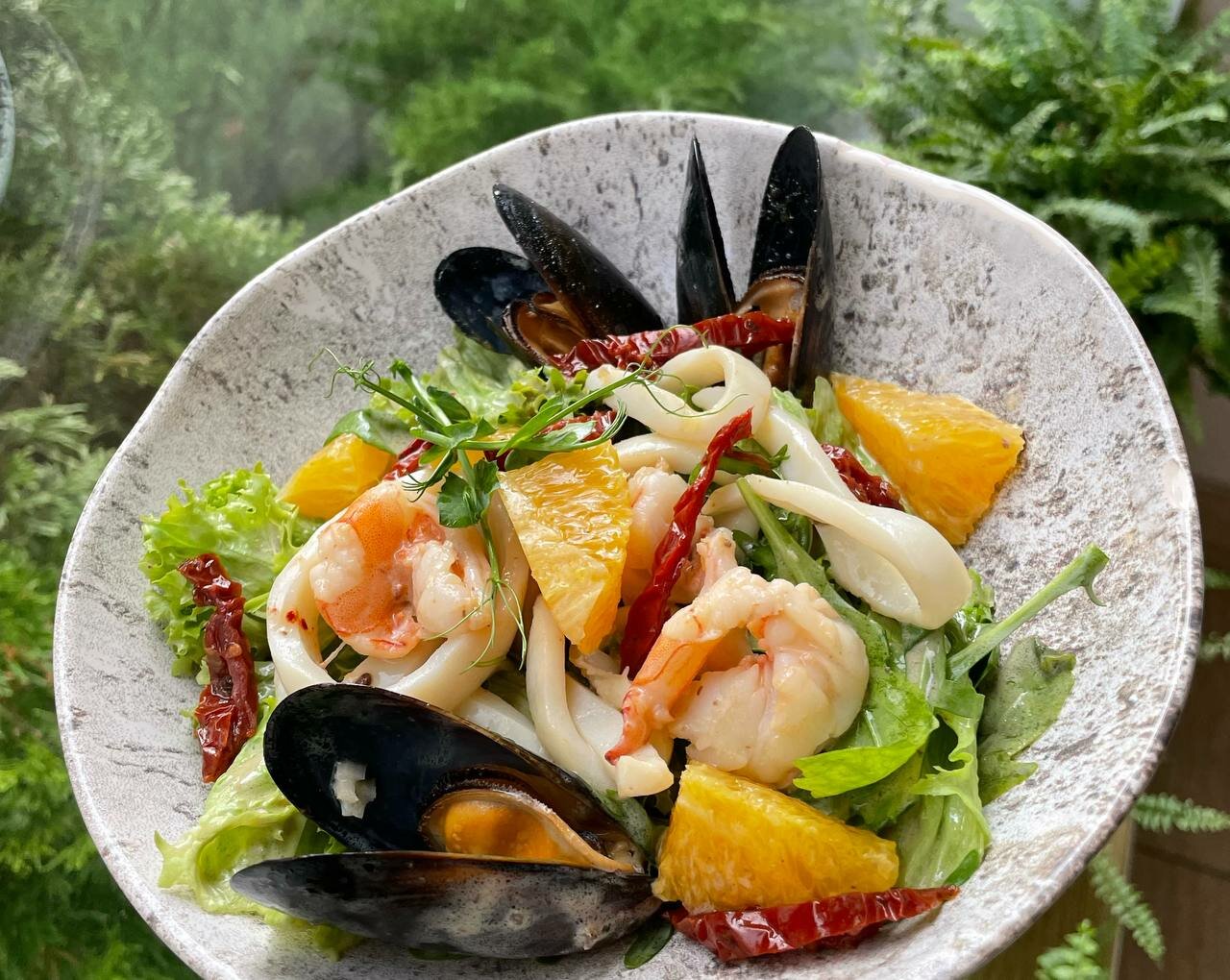 Не плохо,обидно то что покупая салат Цезарь вы получаете салат с простыми кусками помидор и без соуса цезарь(в чем и заключается суть. А так не плохо. А,еще и сыр забыли покрошить.