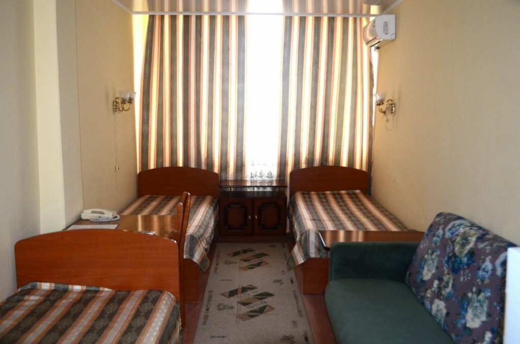 Само здание хорошее. Проблема в персонале . Колхоз. Никто ничего не делает. Начиная от открытия ворот, уборки, заканчивая выпиской документов. Постоянно нужно искать персонал и просить убраться, поменять постель и проч. По аксессуарам. Такое ощущение, что сотрудники гостиницы все утащили все домой и оттуда принесли старые одеяла, простыни, полотенца. Поэтому все старое, потрёпанное и разношерстное. Даже постель из разных комплектов… Отдельно нужно сказать про бармена. Он в наглую ворует. Хамит. Нужно потрудиться, чтобы отвлечь от телефона. Был с ребёнком, так он ему продавал всё в два раза дороже. Причём в наглую — всё. Совсем все по другому в бассейне. Как будто другая планета. Вежливый, приветливый персонал.