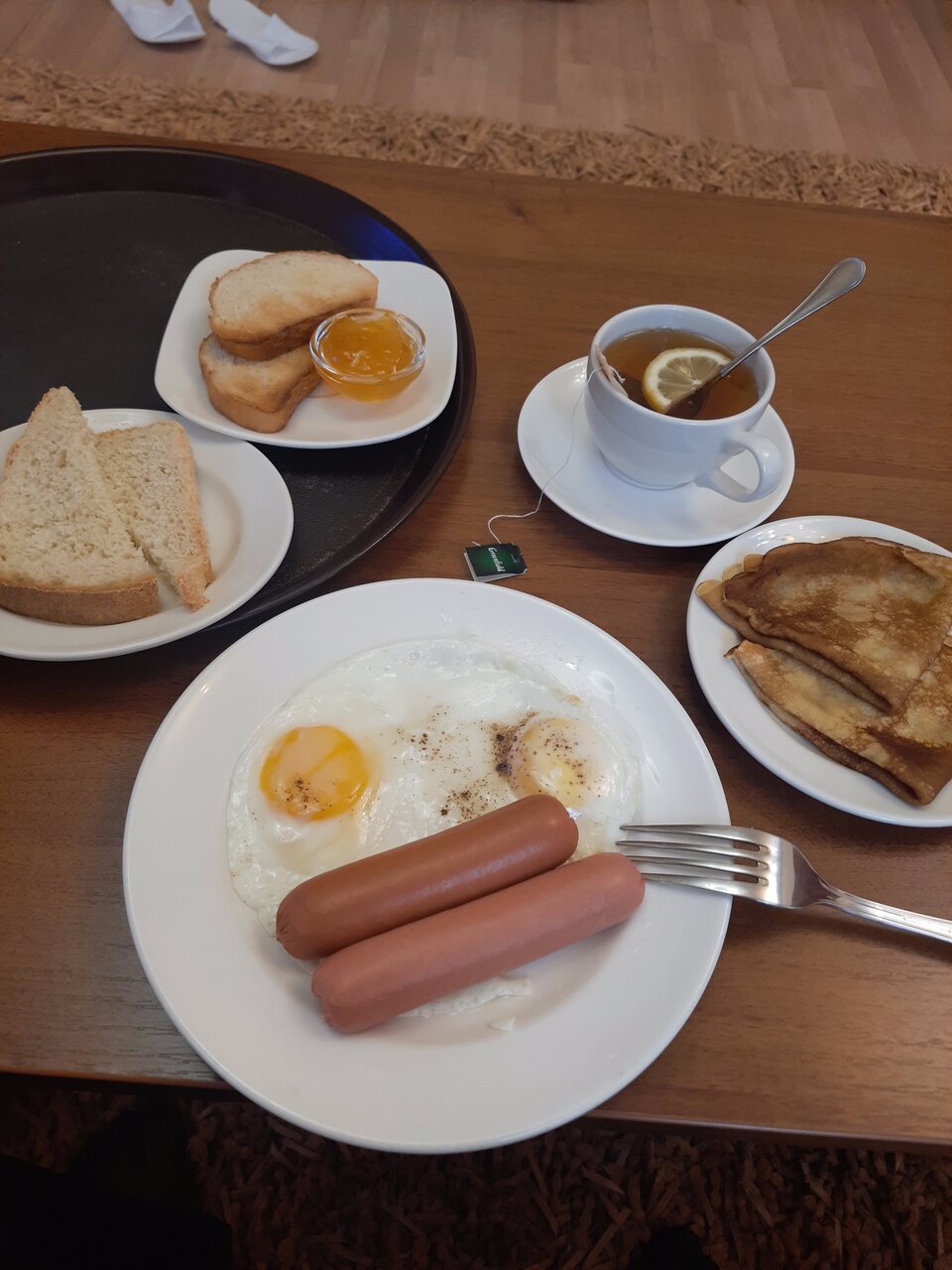 Просторный номер, приветливый персонал, приносят завтраки, всё необходимое в номере есть(фен, чайник, посуда, удлинитель)