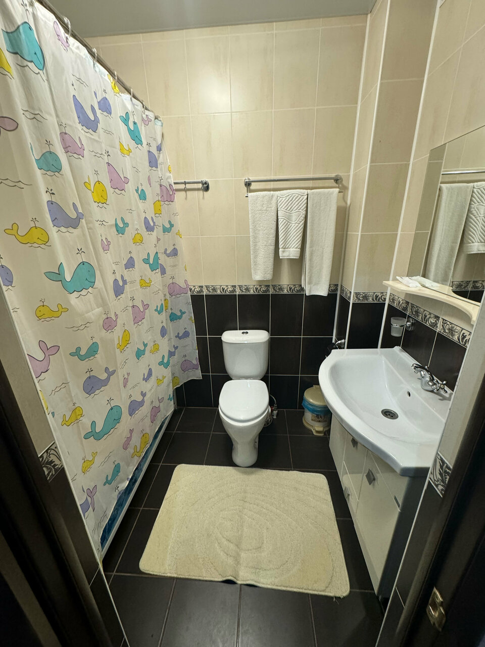 Гостиница очень понравилась, все чистенько. Ночью заселили без проблем. В двухместном номере было все необходимое, даже кондиционер. Холодильник хорошо работал. Были все необходимые туалетные принадлежности ( бритвы, шампуни, гели, зубные щетки) и т.д. Номер чистый и уютный с хорошей двухспальной кроватью. Гостиницу рекомендую.