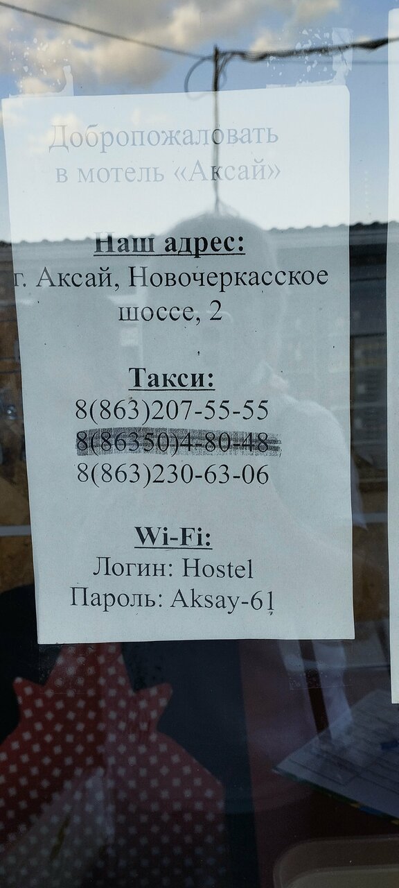 Контакты: — Сайт: http://www.хостел-аксай.рф/ — Телефоны: +7 (863) 226-18-27 (бронирование), +7 (863) 279-40-63.