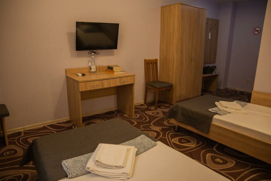 У меня были две попытки заселиться в эту гостиницу. В обоих случаях я позвонил по телефону и получил подтверждение, что есть свободный номер. В первом случае я доехал на машине за 15 минут, номер был, и я заселился. Внутри всё скромно; в целом — хорошо. Но втором случае я звонил за 3 часа до приезда и попросил забронировать номер. Менеджер отказалась это сделать и предложила ‘просто приехать, номер есть’. Я предупредил, что приеду через 3 часа. Когда приехал, увидел табличку ‘Мест нет’, и внутрь гостиницы меня менеджер не впустила и отказалась заселять! Значит, нет никакого бронирования. Кто успел приехать, тот и заселился. Отвратительная позиция работника гостиницы, совсем не настроенная на работу с клиентом!