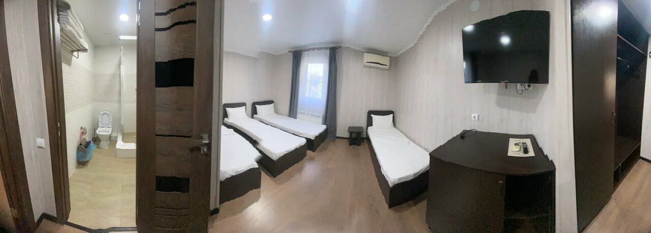 В номере чисто,есть кондиционер, холодильник, телевизор,большая кровать,душ,туалет. Администратор вежливый. Из минусов,по моему мнению,это отсутствие поблизости столовой и отсутствие в номере столика. Плата за номер на двоих 2500 за ночь также не всех устроит. Были в июле 23 г .