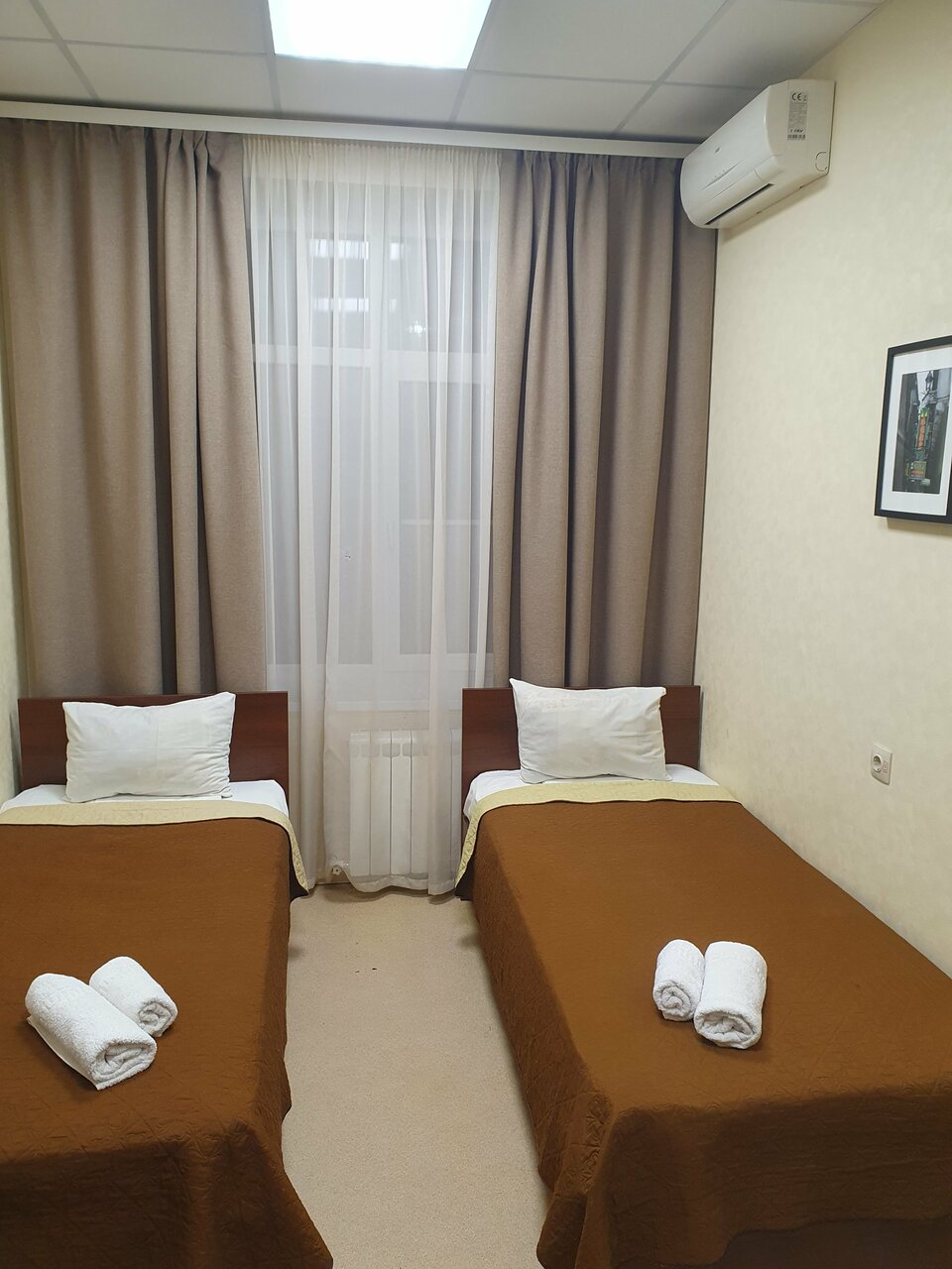 Кровати с ортопедическими матрасами (90*200).Шкаф для одежды, прикроватный столик.Полотенца, ковровая дорожка.Номер оборудован кондиционером.Душ и туалет общие.