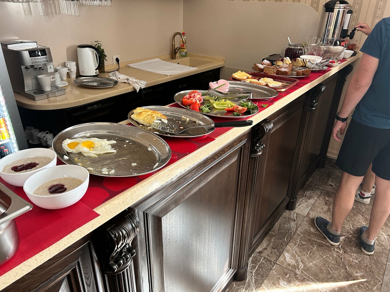 - Грязная посуда и столы на завтраке.