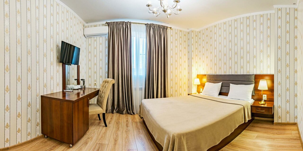 Этот стандартный номер, расположенный во втором корпусе отеля с одной большой двуспальной кроватью и одной односпальной кроватью идеально подходит как для командировок, так и для семейного проживания. В номере имеется просторный туалет с душем, бо...