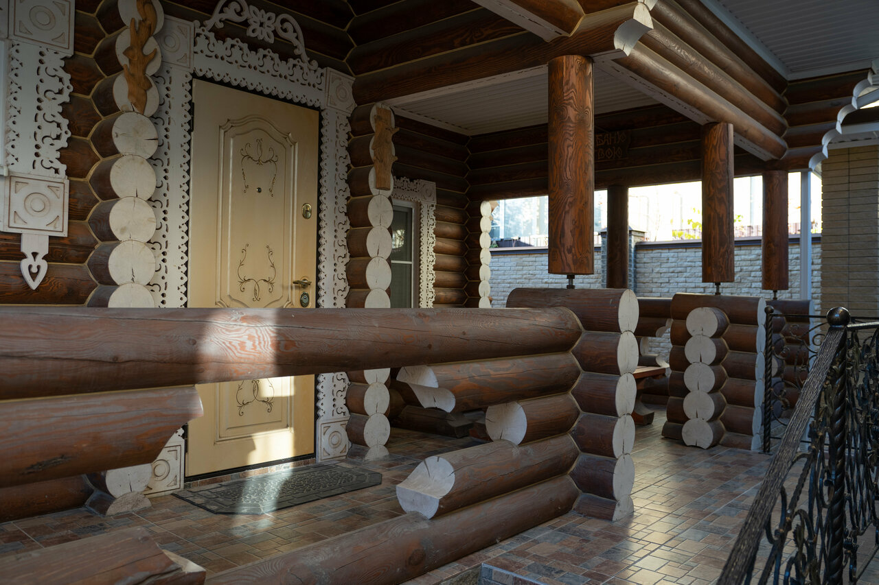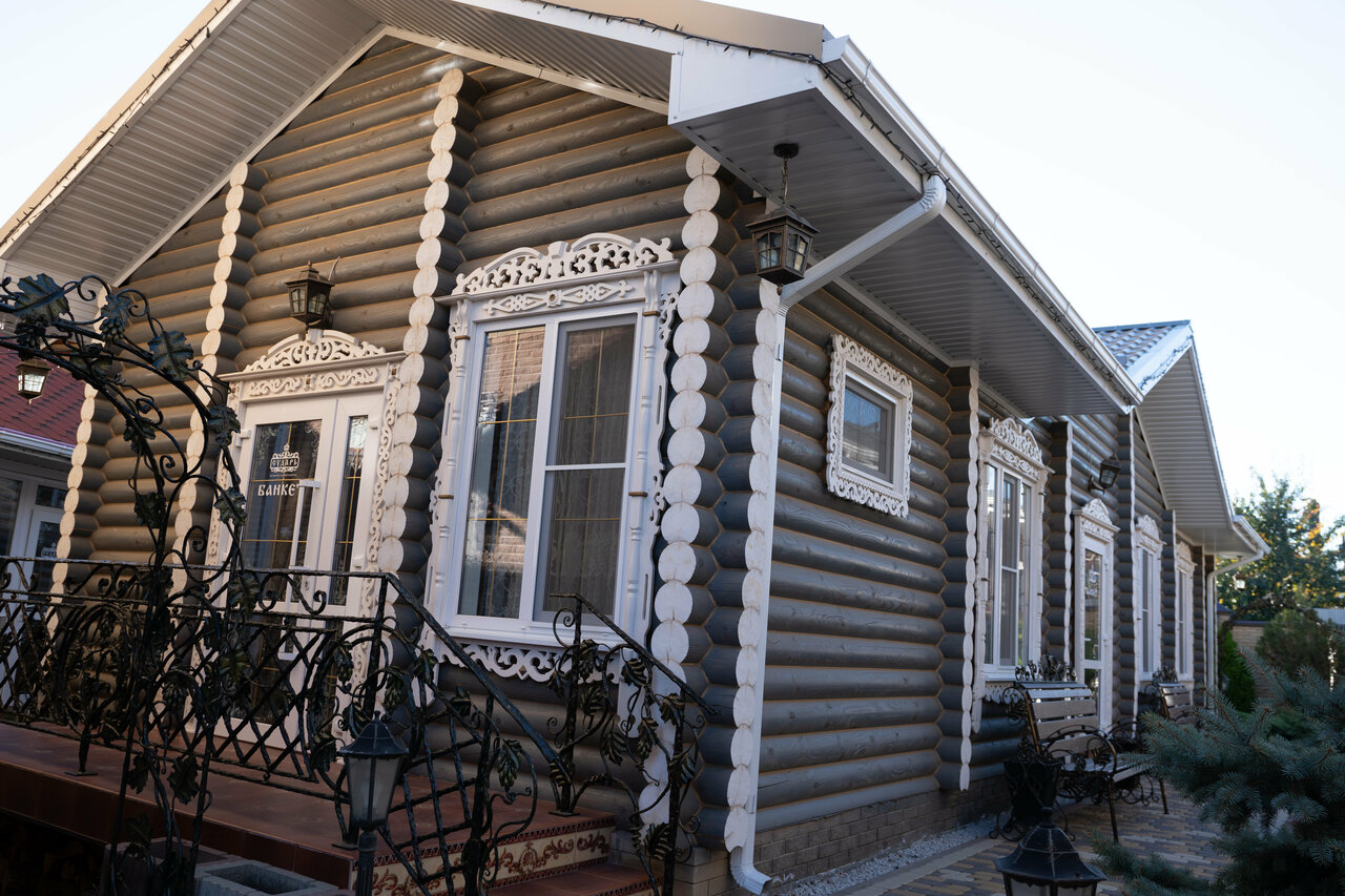 - Приятная территория (русский стиль, срубы, новое оформление).