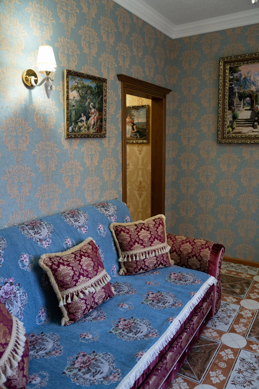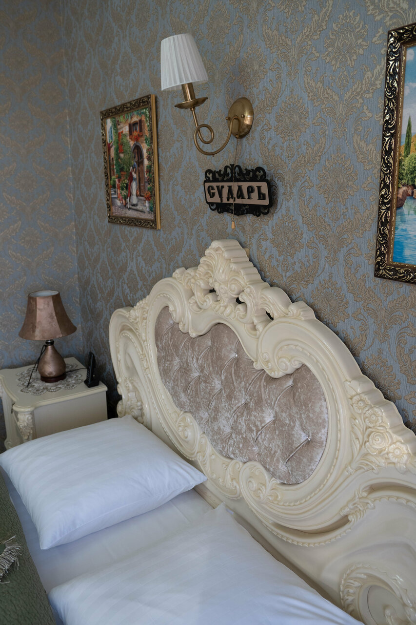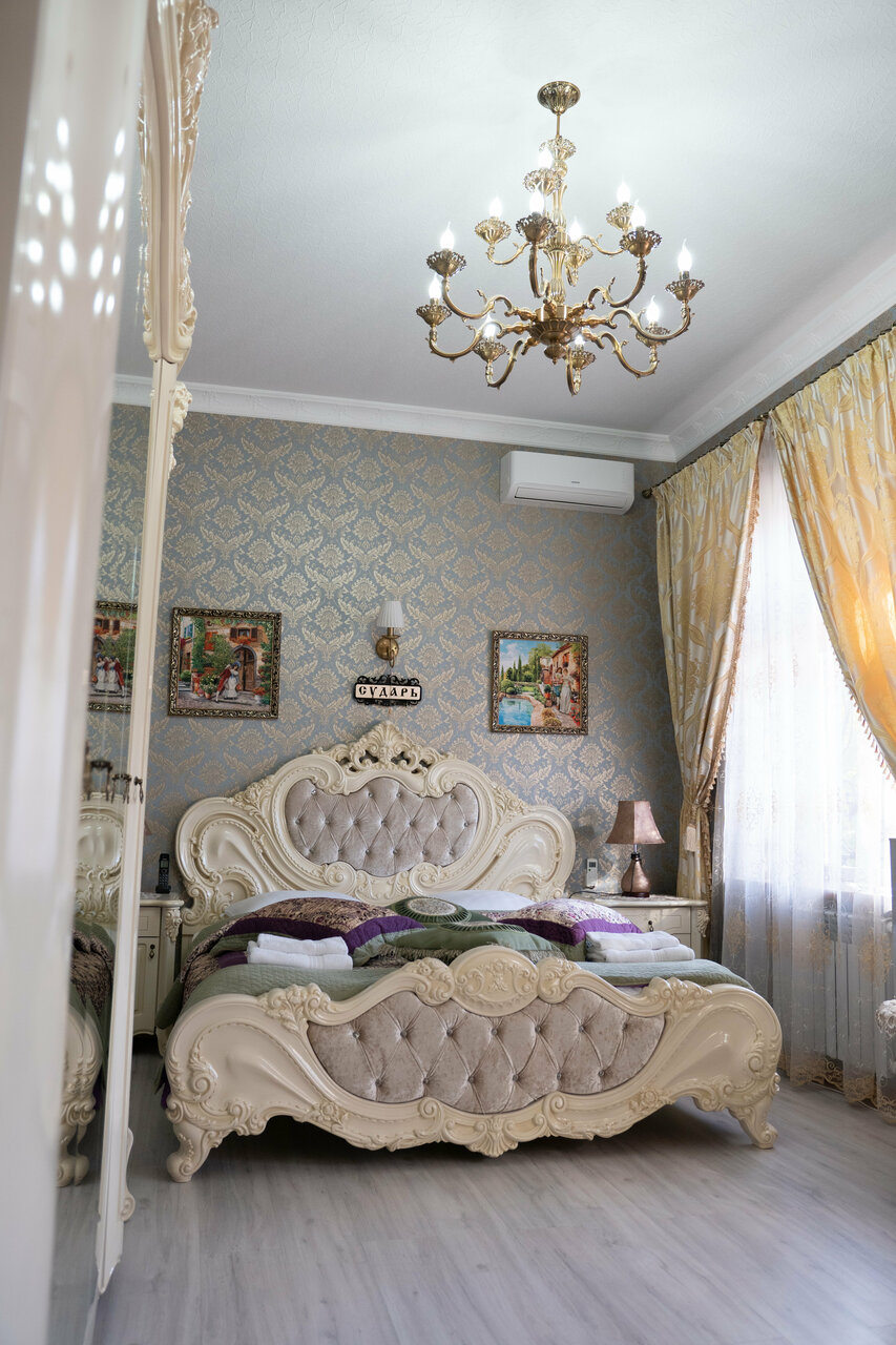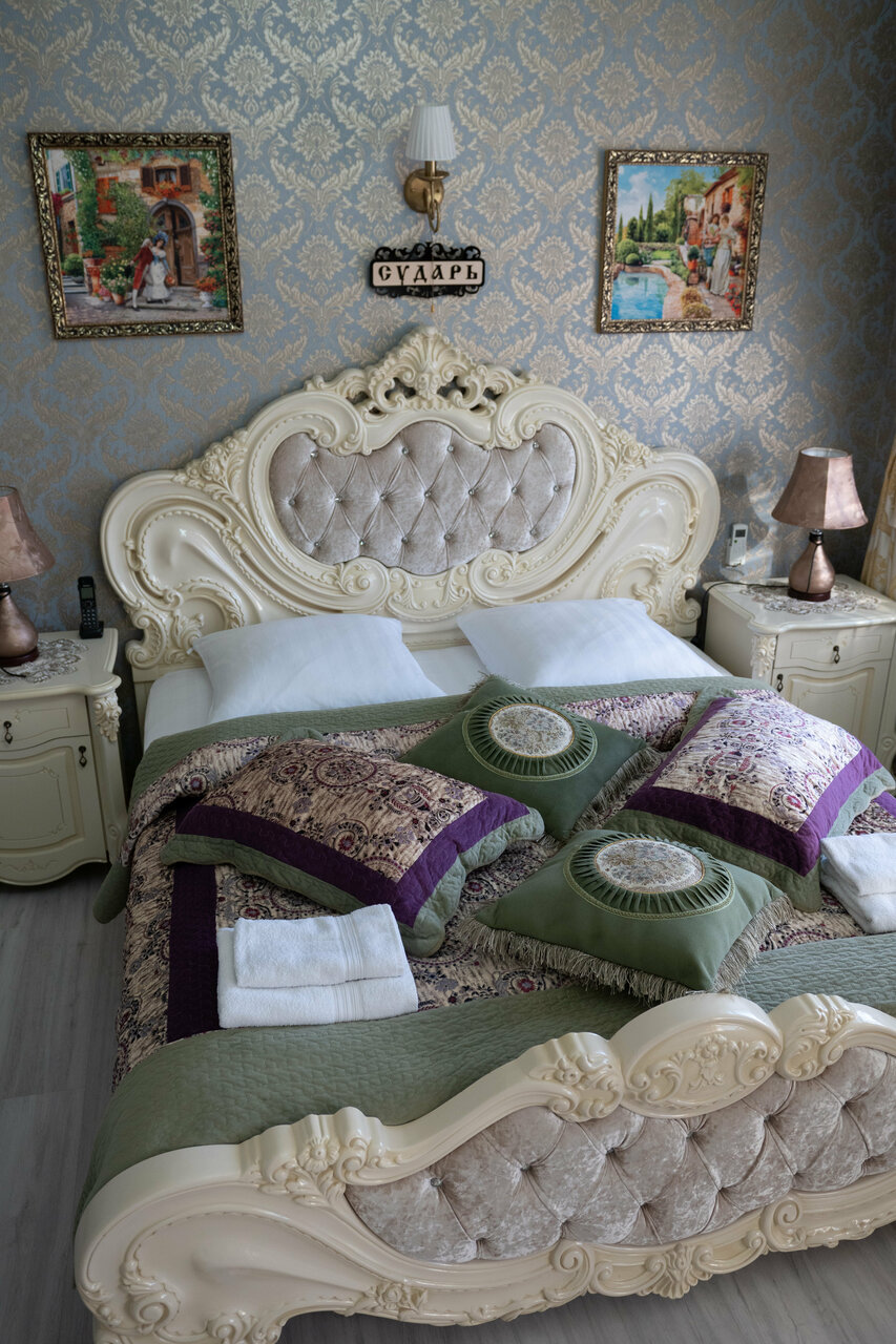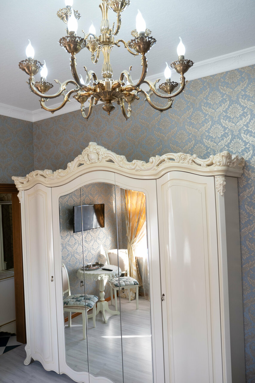 Останавливались на ночёвку по дороге с моря семьёй из 4 человек (6 и 2 года детям). Интерьер прекрасен: по ощущениям — попали в Версаль. Кровати, подушки — отдельное удовольствие, я давно так хорошо не спала. Завтрак был подан в соответствующем сервизе, всё очень приятно, хозяйка приготовила утром ко времени кашу или блинчики (кто, что утром попросил). Единственный нюанс: бронировали номер с включённым завтраком, но завтрак был включён только за взрослых, за двоих деток доплатили 1000 рублей.