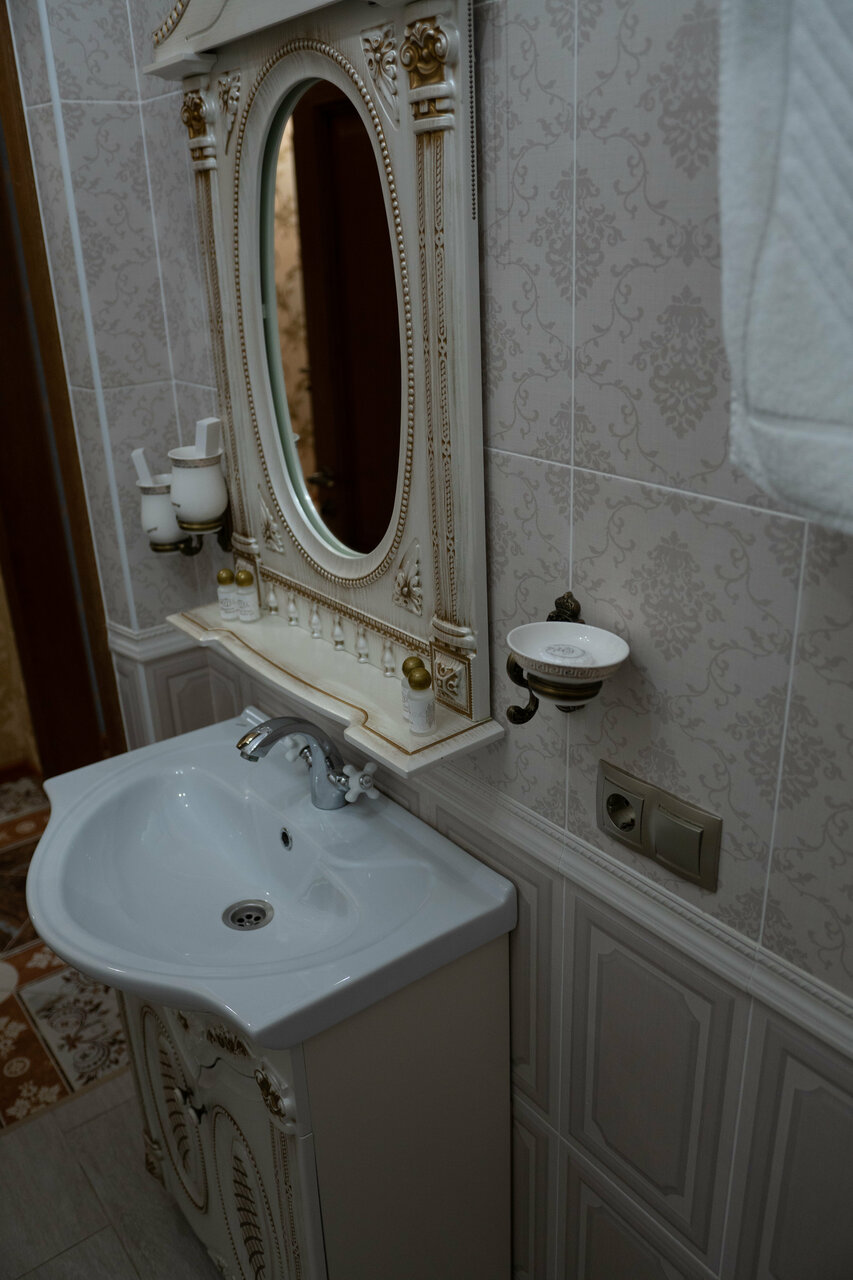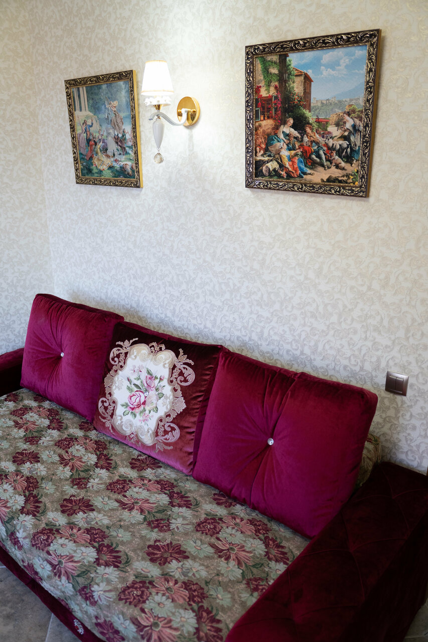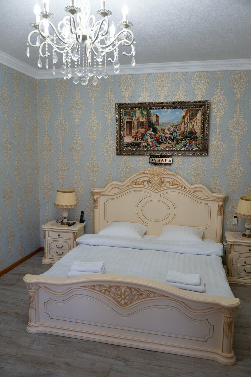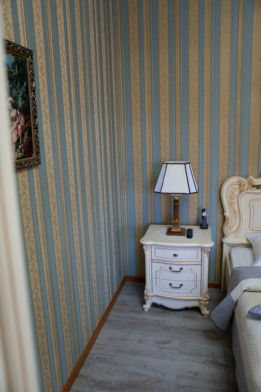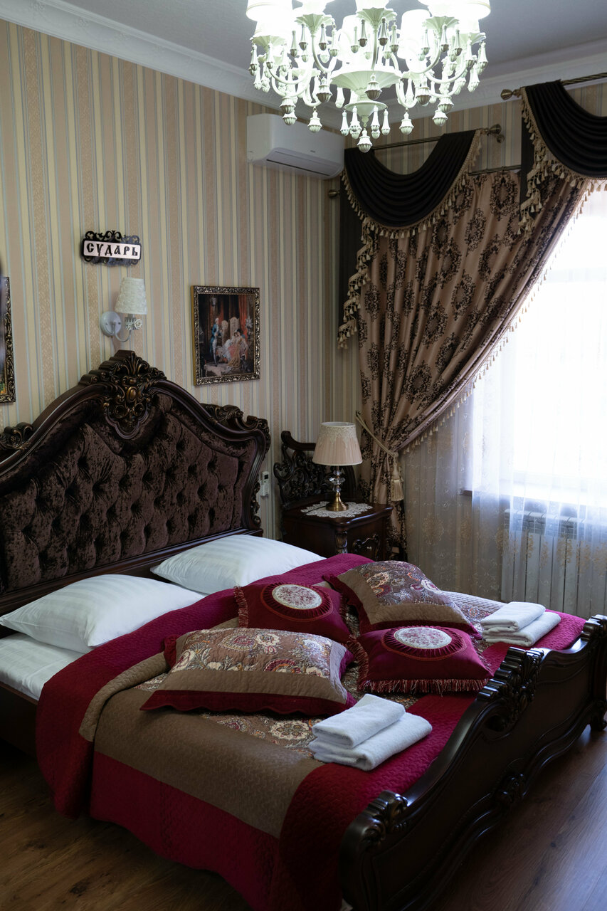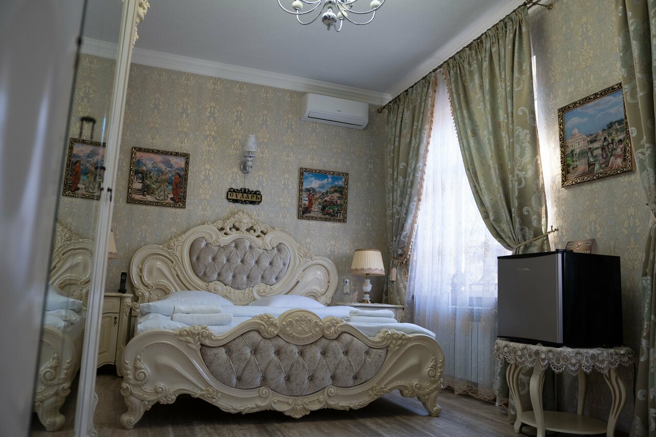 Останавливались на ночёвку по дороге с моря семьёй из 4 человек (6 и 2 года детям). Интерьер прекрасен: по ощущениям — попали в Версаль. Кровати, подушки — отдельное удовольствие, я давно так хорошо не спала. Завтрак был подан в соответствующем сервизе, всё очень приятно, хозяйка приготовила утром ко времени кашу или блинчики (кто, что утром попросил). Единственный нюанс: бронировали номер с включённым завтраком, но завтрак был включён только за взрослых, за двоих деток доплатили 1000 рублей.