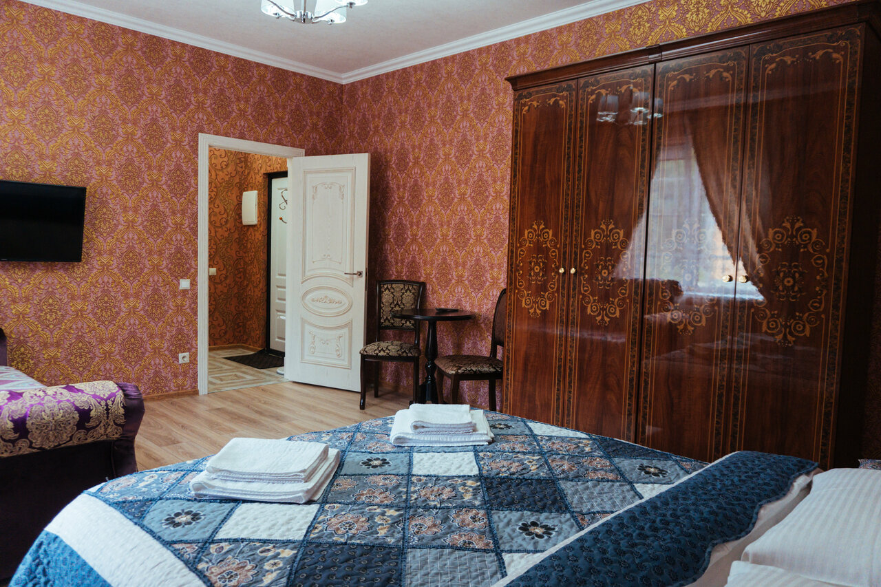Замечательное место! В самом центре Аксая, удобно добираться и в Ростов, и в ближние населённые пункты. Внутри чисто, персонал приветливый, номера шикарные, все как на картинках. Жил в апартаментах: двуспальная кровать, диван, шкаф, столик, два телевизора, кухонный стол, гарнитур, плитка, холодильник, душ — все супер!
