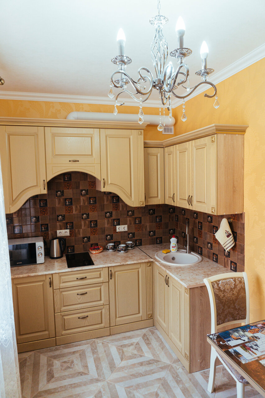 Номер класса Люкс с собственной ванной комнатой и кухней. Бесплатный Wi-Fi. Бесплатная охраняемая парковка. Курение в номерах запрещено. Гипоаллергенный. Без завтрака.