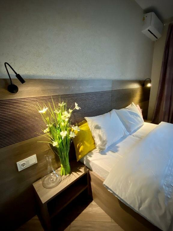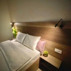 Всем рекомендую! Мы снимали семейный номер. В номере две комнаты, кухня с плитой, с СВЧ , холодильник, все столовые приборы, а так же моющее средство для посуды приятно были этому удивлены. Номера очень уютные, чистые, стильные, всё новое, постельное белье чистое. Удобная парковка. Мебель не жёсткая. Очень приветливая и отзывчивая хозяйка отеля! Дворик ухоженный! Неподалеку есть магазин Пятёрочка. То что писали тут что они сами стелили постельное белье я считаю, что это враньё. У нас лично было всё застелено!