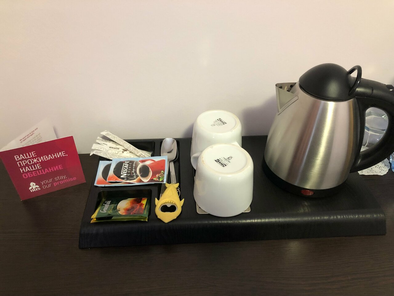 Отель понравился. Девушка на рецепшен очень приветливая, сразу нас заселила. Всё в номере продумано до мелочей, даже зубные щётки есть, тапочки и халаты. Чайник с пакетиками чая и кофе. Кондиционер бесшумный. Телевизор новый. Свежий ремонт и новая мебель. Белоснежное бельё. Единственное, что мне не подошло: матрас слишком мягкий и ‘хрустит ‘( как снег), что не очень удобно для моего больного позвоночника. Но может другим людям будет отлично. В отеле есть кафе. Завтраки хорошие. От отеля до Александровской Слободы идти пешком пол-часа. Мы приезжали в понедельник-вторник. Жаль, что некоторые музеи закрыты в эти дни. В целом, отель рекомендую и ставлю ‘5’.