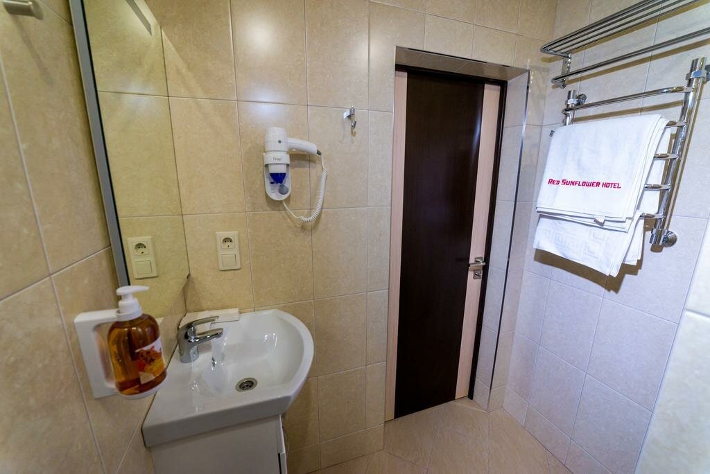 Остановились в гостинице «Красный подсолнух» на выходные. Очень понравилось! Все удобства, отличный номер, чисто и уютно. Wi-Fi делает пребывание ещё более комфортным. Отель оформлен с хорошим вкусом и в соответствии с современными требованиями, всё очень аккуратно, всё новое. Мебель в номерах чудесная, кровать вообще супер — один из самых удобных матрасов, постельное белье белоснежное. Сантехника, кондиционер, фен, холодильник, утюг – всё, что нужно, когда ты вдалеке от дома. Персонал отзывчивый, доброжелательный. Всё супер! Спасибо огромное!