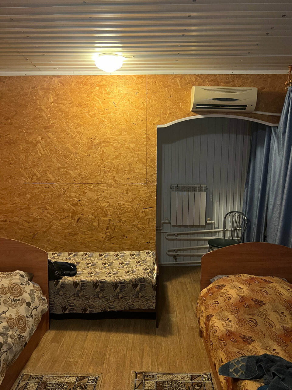 Просто ужас!!!!номер за 2250 настоящаий сарай из юсб фанеры,провода и розетки все в куче,матрасы как будто из помойки,телек один канал и то шипит,в соседнем ‘номере’ храп как будто в ухо,ценник бешенный,приехали поздно вариантов не было,пришлось спать одетыми потому что холодно а слесарь напился и спит в заперти ПРОСТО МИМО!!!