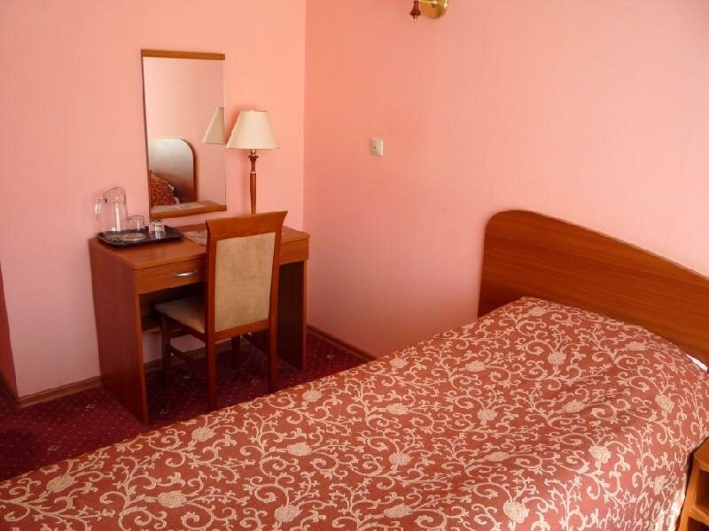 Одноместный номер 2200 — 2800 . Типичная гостиница советских времён. Кафе в гостинице нет. Коридоры приведены в порядок ( виден недавний ремонт ) , а вот до номеров он видимо не дошёл ещё… Самый большой плюс — наличие горячей воды . И чистое постельное бельё.