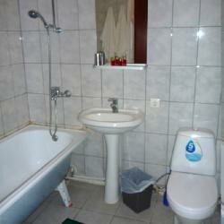Уютный номер, большой, светлый . В номере телевизор, холодильник, кондиционер. В ванной комнате душевая кабинка,все исправно работает,дверца кабинки закрывается .Гель для душа, шампунь, мыло ждало нас на полке). Скажу отдельно про постельное белье. Белое, чистое, хрустящее. Было комфортно .Коллектив очень приветливый и доброжелательный. В самой гостинице есть кафе. Завтрак, обед, ужин. Мы только завтракали, вкусно и не дорого. Большое спасибо!