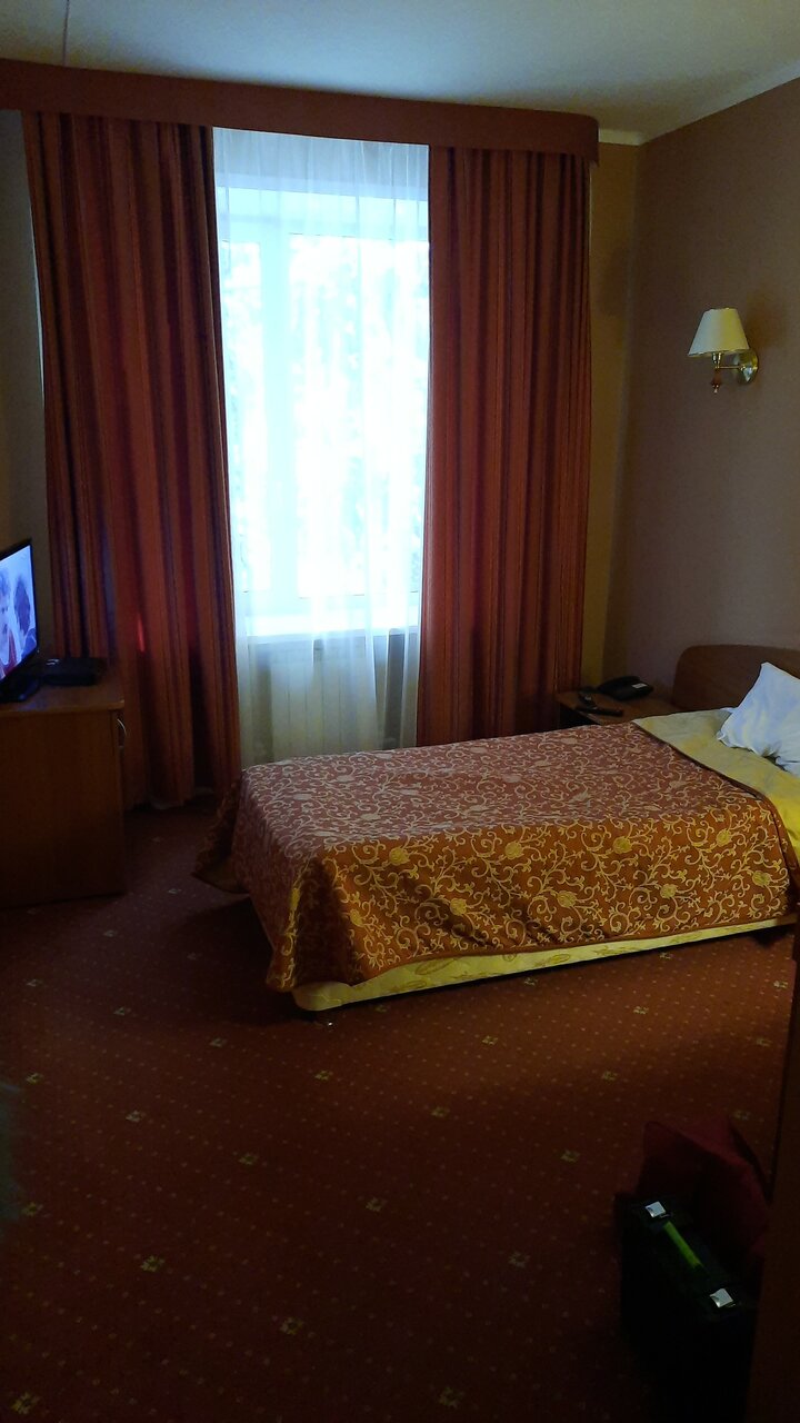 Для города, в котором полтора отеля, очень хорошо. Есть завтраки и ужины на выбор из трёх вариантов. Гостиница больше для командировочных, чем для туристов. Стены из гипсокартона, без звукоизоляции. Хорошо, если соседи не храпят. Пол застрелен ковролином. И уже вытерт. ТВ каналов немного, пульты глючат.