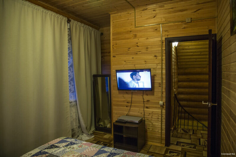 Чудесное место! Великолепный сосновый бор, красивые домики, гамаки, качели, детская площадка, в перспективе бассейн, баня, мангальные площадки перед каждым корпуслм, автостоянка. В домике на первом этаже кухня-гостиная с плитой, холодильником, есть ванная с туалетом и душевой кабиной. На втором этаже — два двухместных номера и туалет. Очень уютно, чисто. Обязательно приедем ещё.
