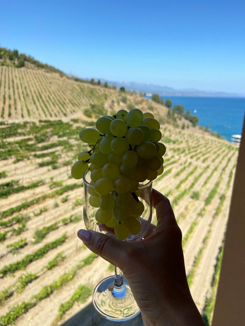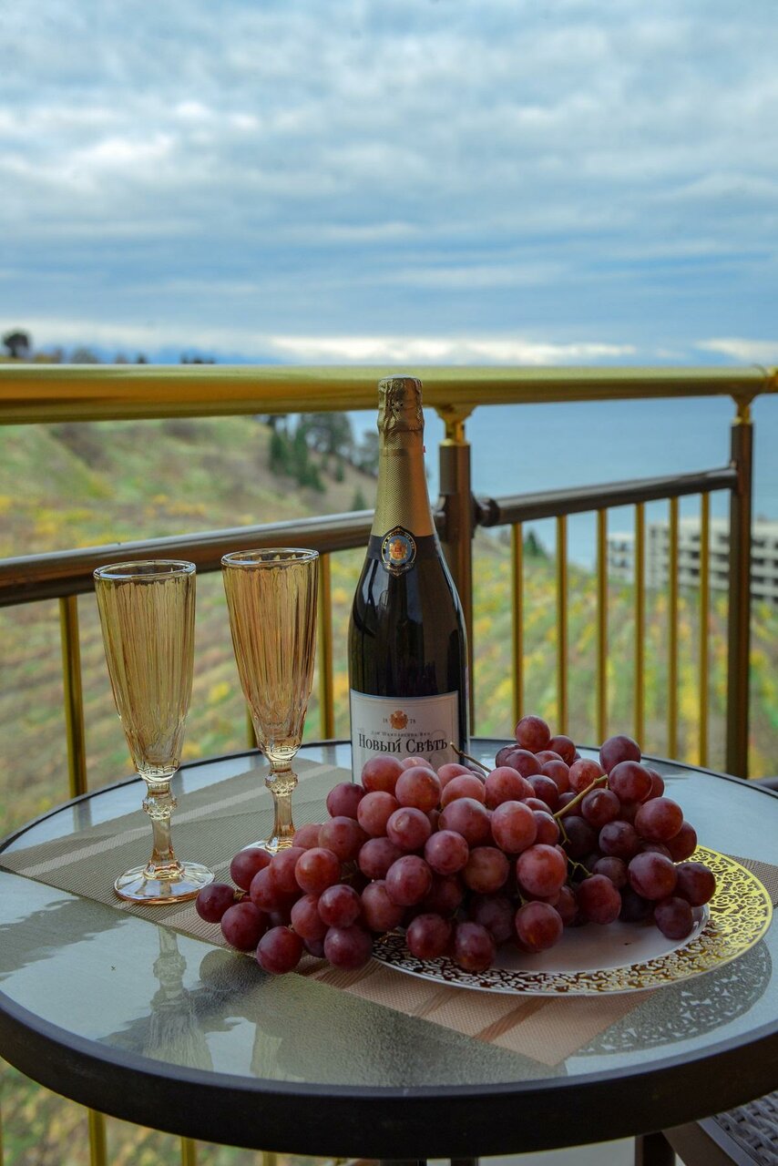 Уютный и просторный двухкомнатный номер с раздельными комнатами,расположен на 1-ом этаже. В каждой комнате панорамное окно и балкон(терраса) с видом на море, виноградники и прилегающею территорию.Максимальное размещение 6 гостей.В номере: деревя...