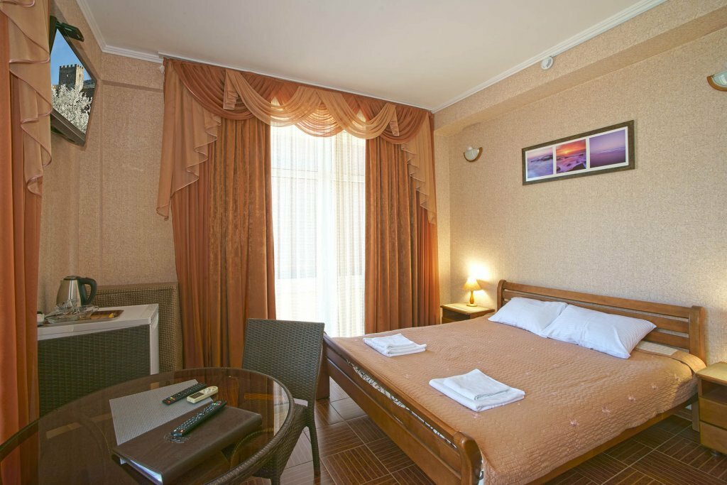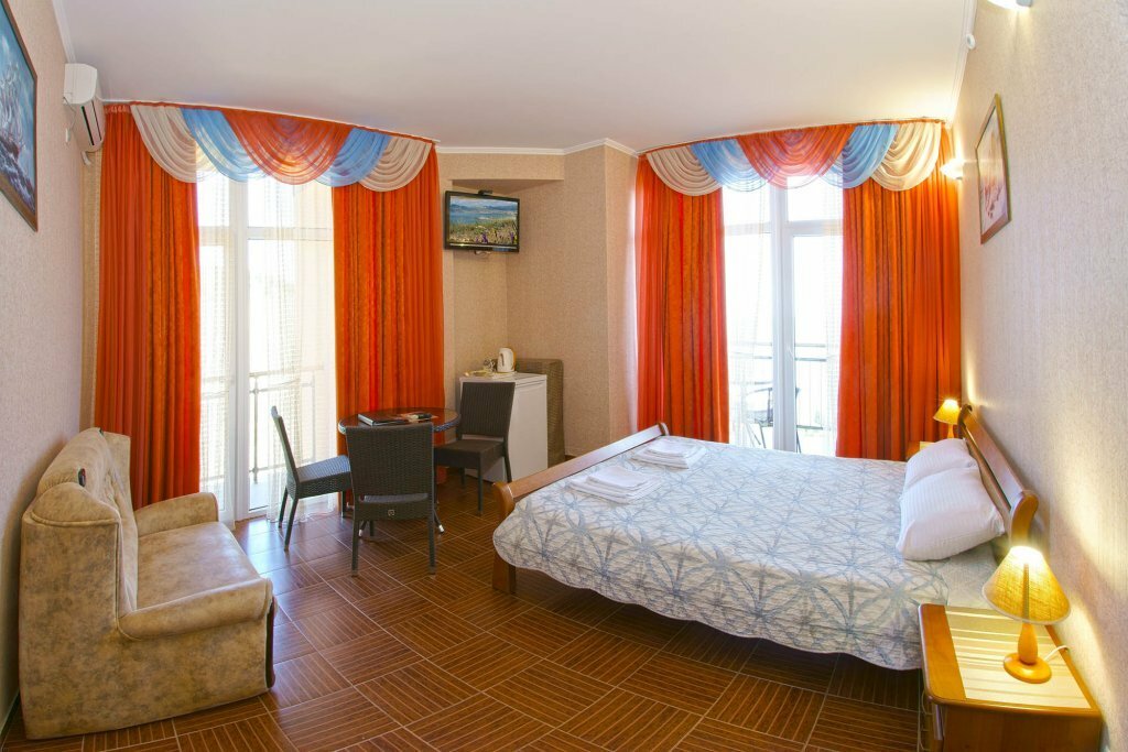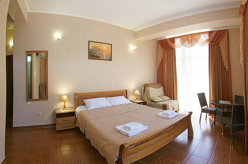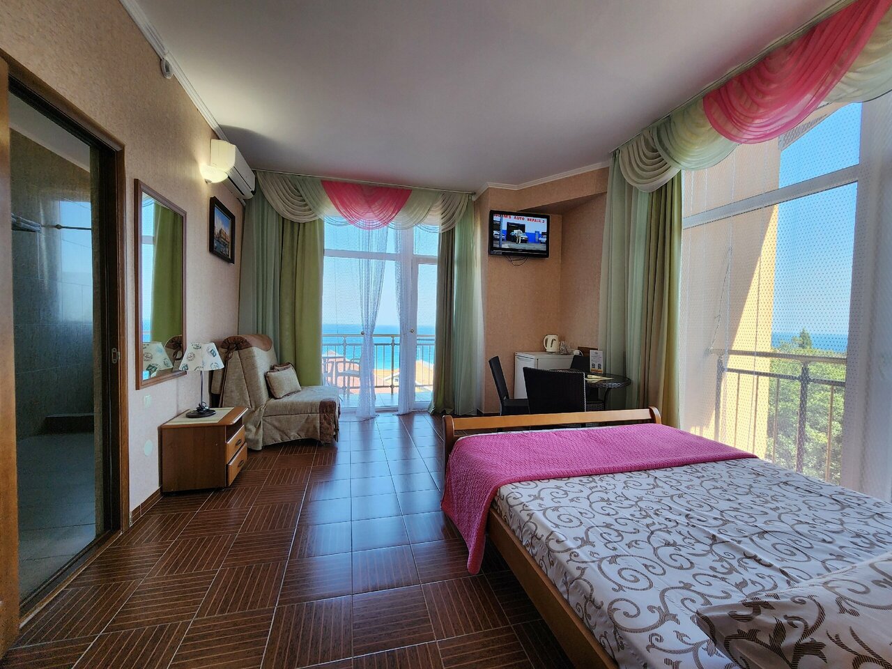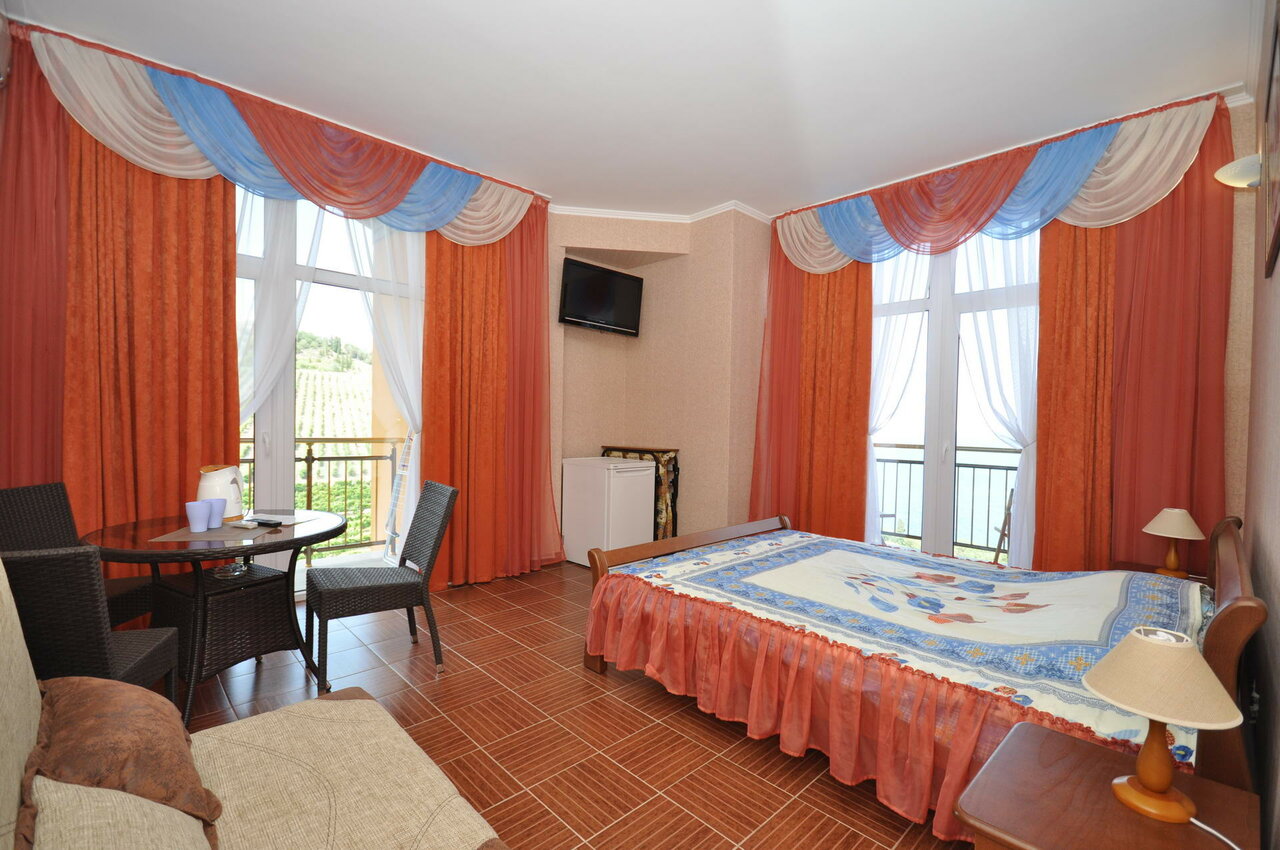 Если Вы ценитель пейзажей и прекрасных видов, то правильным выбором для Вас будет номер данной категории.В номере панорамные окна,один или два балкона(в зависимости от этажа).Из номера прямой вид на море и виноградники.Подойдет для размещения от 2...
