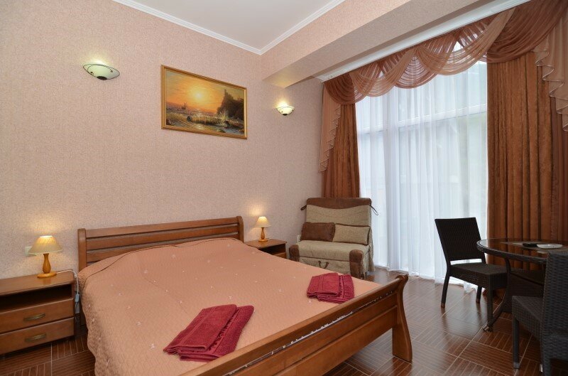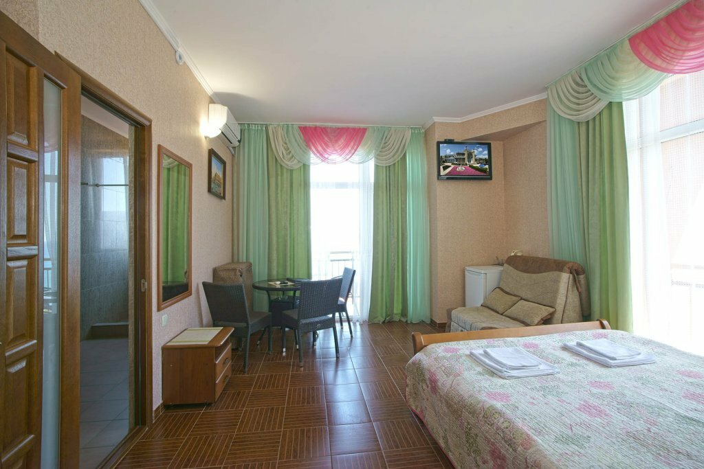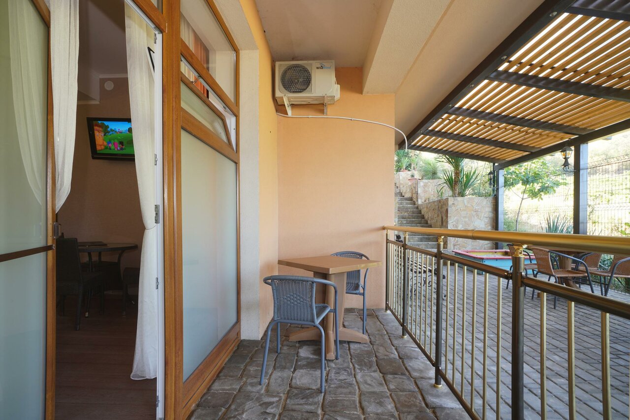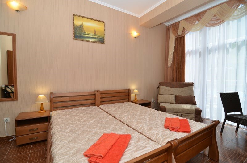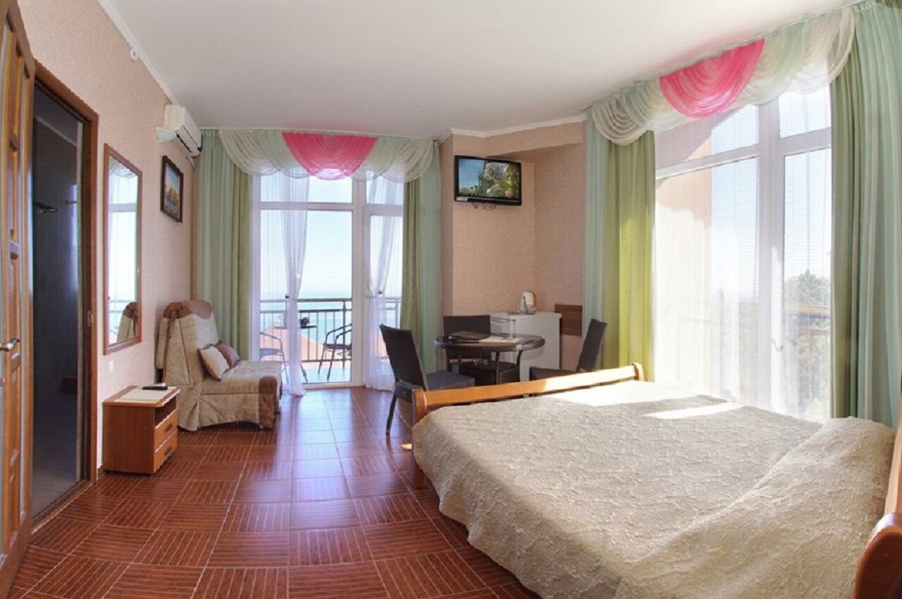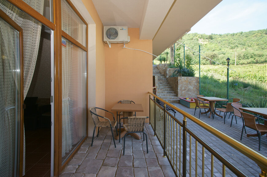 Отдыхали в июле 2020г. Встретили нас отлично, придоставленный нам номер очень понравился, чисто, хороший интерьер, номер с понорамным окном и балконом. Вид на виноградники, четвёртый номер. В номере всё есть, убирают каждый день. Встречала нас Валентина, всё рассказала и показала где, что находится. Мы остановились на 5 дней, кухней не пользовались, ели в кафешках и столовых. Спуск очень крутой, но мы спускались на машине и оставляли у моря, где все паркуются. В принципе нас это не напрягало. Место нам это понравилось, думаю что мы ещё сюда вернёмся.