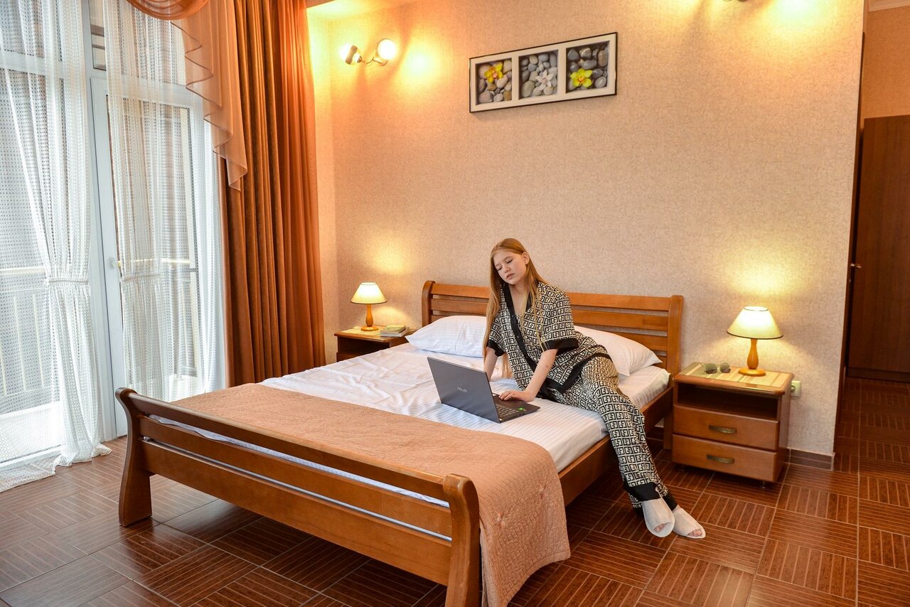 Все отлично и становиться только лучше! Отдыхали в июле 2013 и июле 2019 и высокой вероятность приедем ещё! Удобства: 1. Можно заказать номер с завтраком. 2. Есть просторная кухня столовая и готовить самостоятельно. 3. Есть своя парковка. 4. Есть wi-fi с отличным приемом и скоростью. 5. В номере есть холодильник, чайник, тв с хорошим набором каналов, кондиционер. 6. Просторная веранда с детской песочницей. 7. Море рядом в 10-15 мин прогулочным шагом. 8. Есть прачечная. Рекомендуем!!!