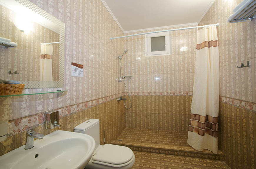 Здесь замечательный отель в очень живописном районе. Понравилось у вас, особенно 4-3 местный номер, в котором нас расселили семьей. Все чистенько, у вас, уборка по расписанию, ванная комната идеальная.