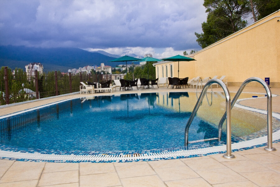 Гостиница хорошая, чисто, отзывчивый персонал. Завтраки однотипные. Мусор выносят через день, белье постельное за 4 дня не меняли. Расположен на окраине. 10 мин до набережной пешком. 5 мин до моря. Свой пляж на море. свой бассейн-подогреваемый. Много вывесок на украинском языке.