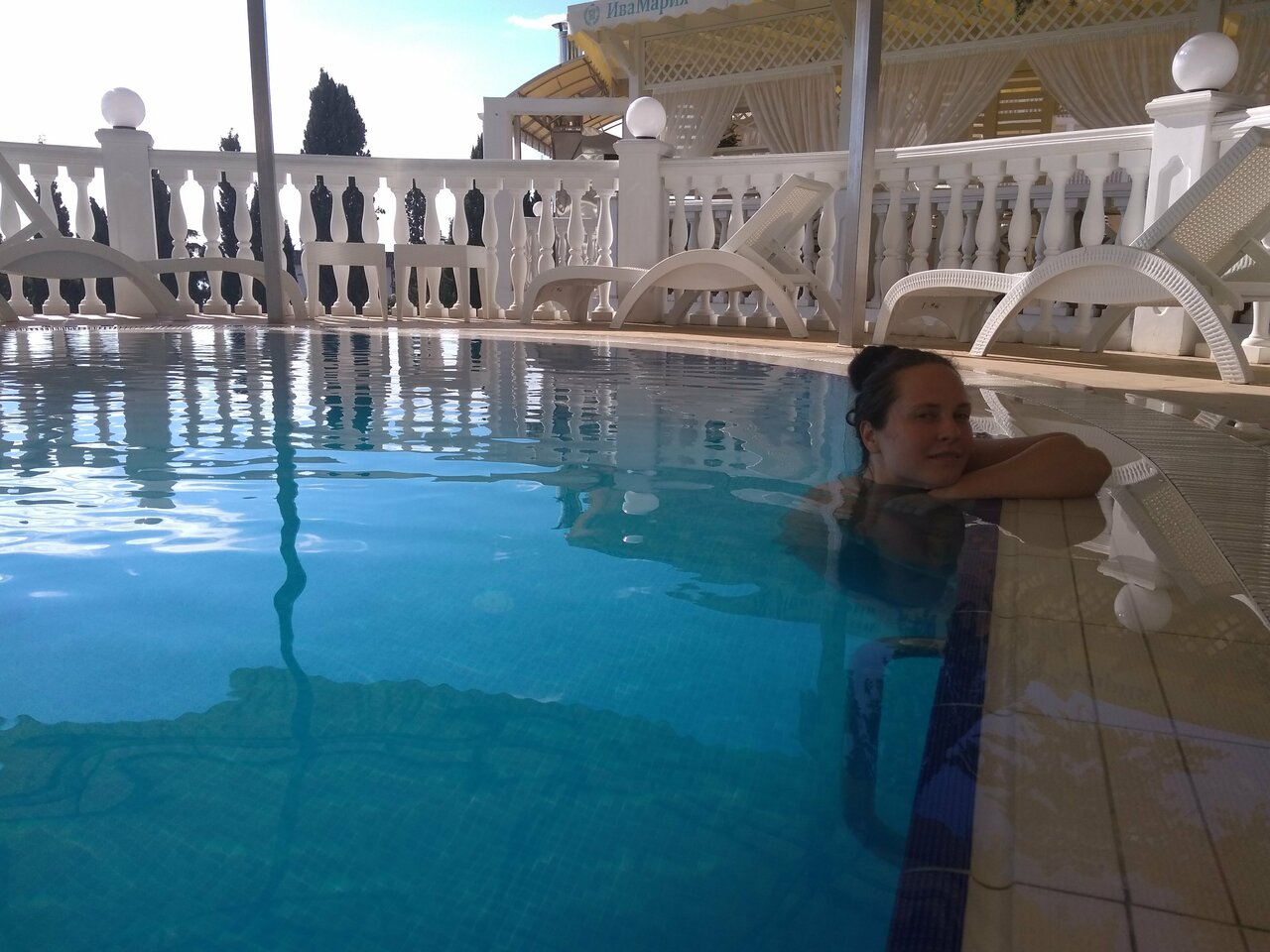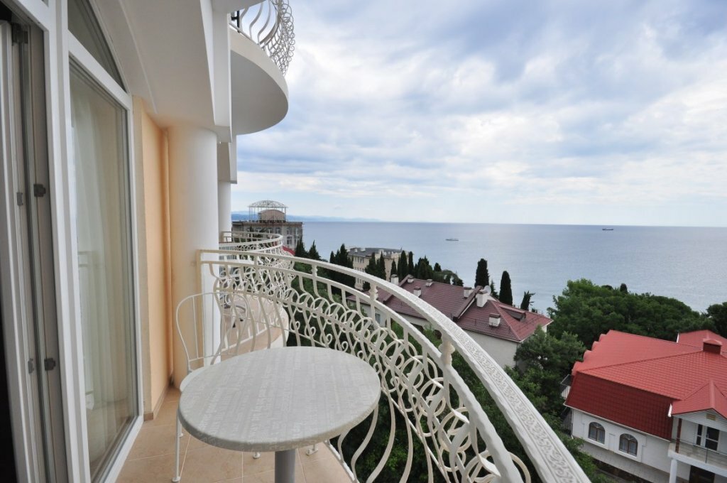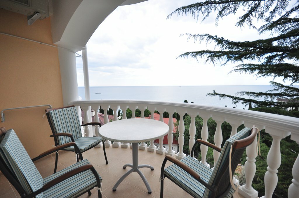 Номер полулюкс с шикарным видом!! Все очень вежливые и приятные молодые люди работают! Прекрасные завтраки!! Мне очень понравилось..но далеко от центра, но поскольку Алушта мне не понравилась то отдалённость от Центра не явилось проблемой, очень тихое место, чистейшее море спокойный отдых!! Если занесет в эти края то только Блюмарин