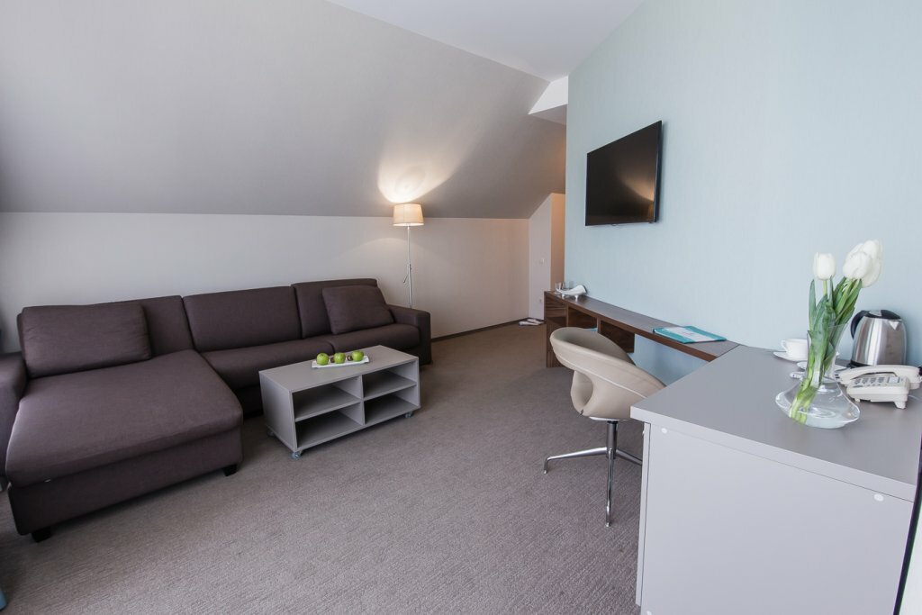 Отличный вариант для отдыха в относительно тихом районе Алушты. Номера вполне комфортные ( мы жили в люксе на 5 этаже и в номере с террасой на 7 этаже). При этом люкс нам понравился больше. При отеле великолепные завтраки, все очень вкусно и в больших количествах. Обед или ужин можно по меню заказать в номер, и это будет гораздо вкуснее и экономичнее, чем сходить куда-либо за пределами отеля. Отдельно хочу отметить, что весь без исключения персонал и администрация отеля- это очень добрые и неравнодушные люди. Спасибо вам, мы обязательно вернёмся.