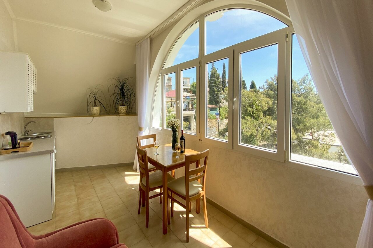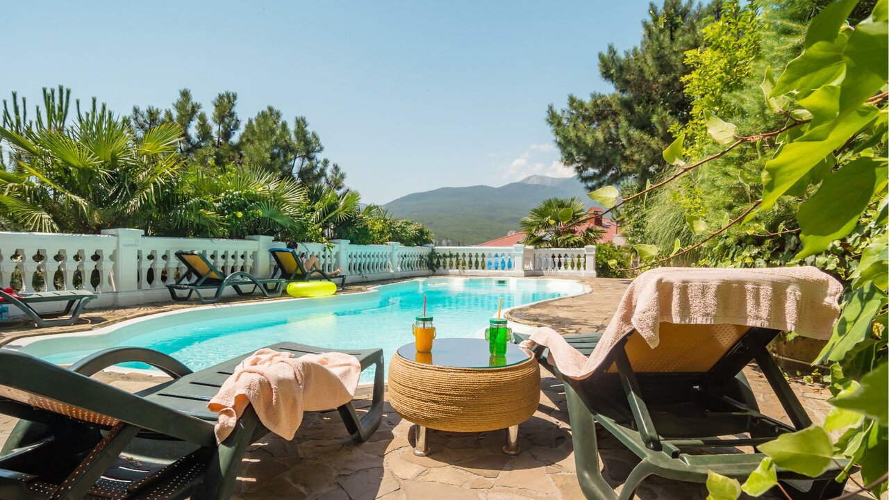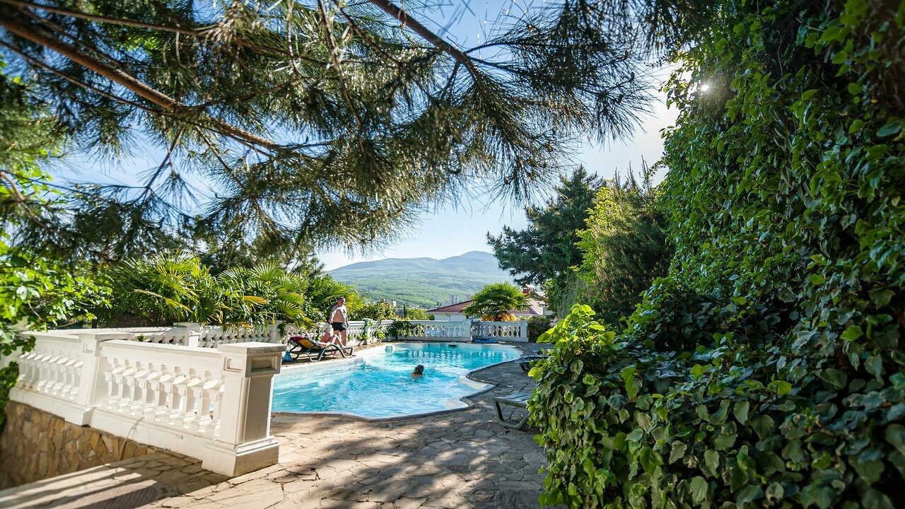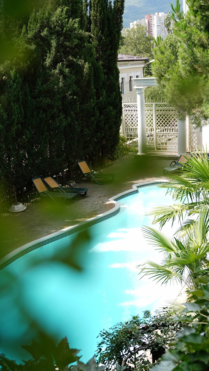 Очень красивый бутик-отель, а вид из балкона на Алушту нас просто покорил) Приятное место, куда хочется вернуться. Приветливые люди, вкусная еда, потрясающая территория, сад, бассейны, качели Все очень уютно, место тихое, вдалеке от шумной набережной. К морю- комфортно идти мимо центра и магазинчиков.