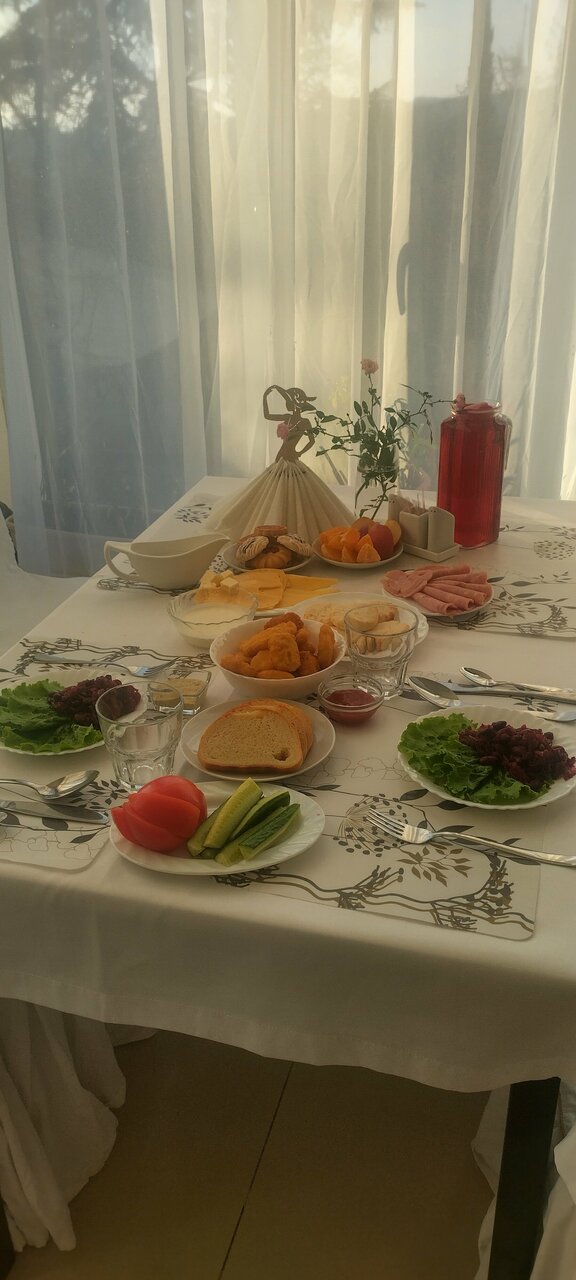 Мы сейчас тут отдыхаем. На завтрак еды хватает,все вкусно. Номер просторный, уборка заявленна ежедневная,но по факту только выносят мусор. Территория очень красивая, бассейны замечательные, есть банька. Много котиков и просто ваушный вид из окна. Нам нравится)