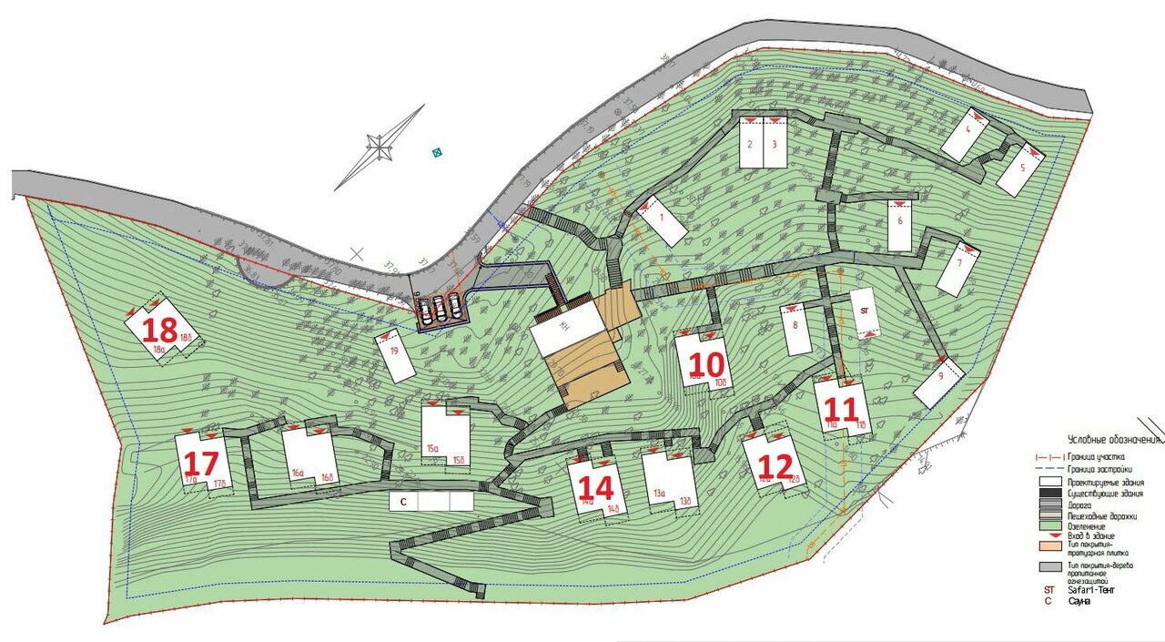 Прикольное место, но для тех, у кого норм спортформа. Крутой подъем по лестнице к домикам. Дороговато за тот сервис, что есть.