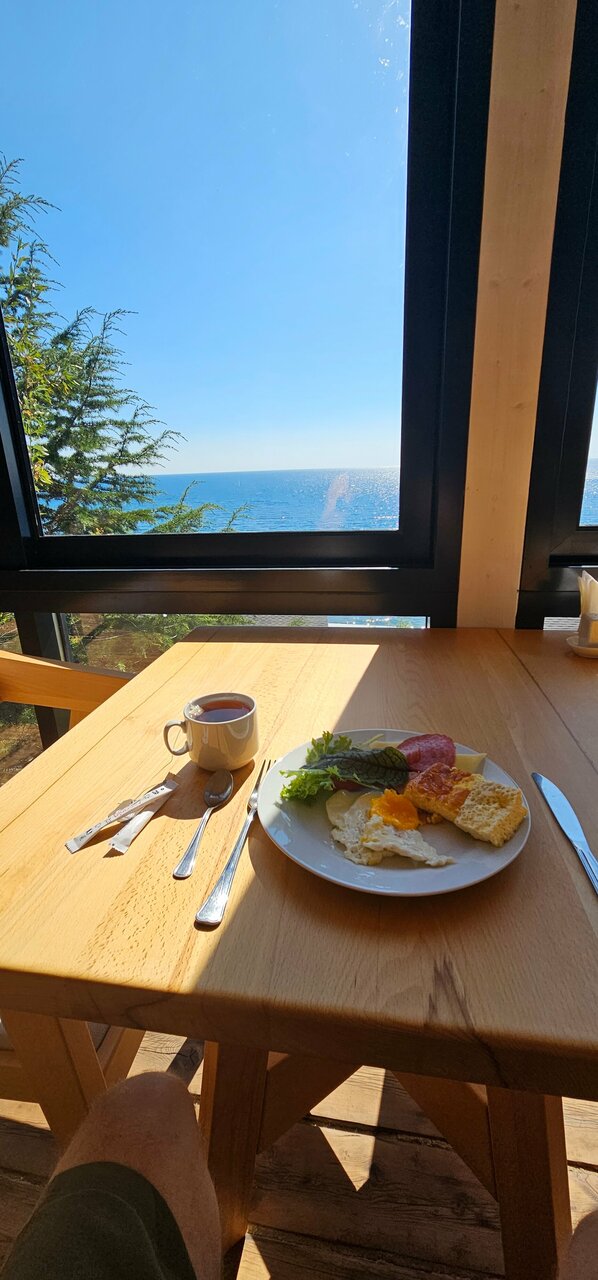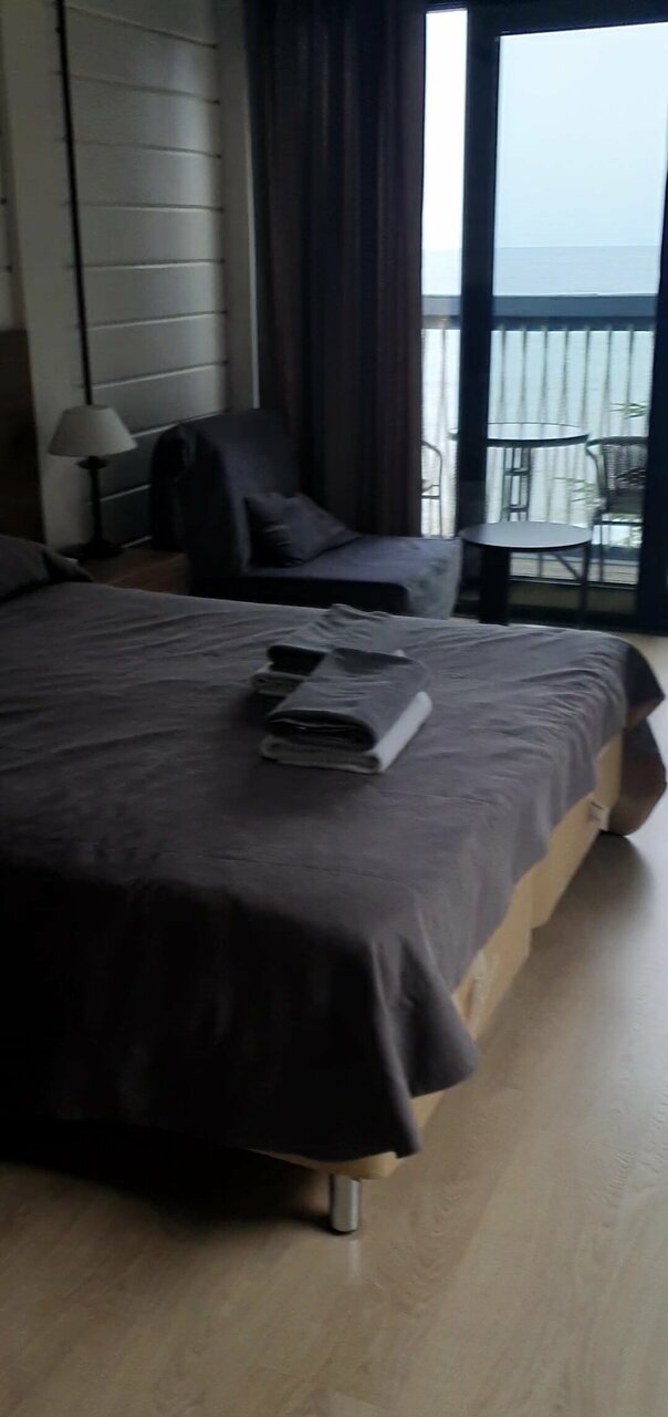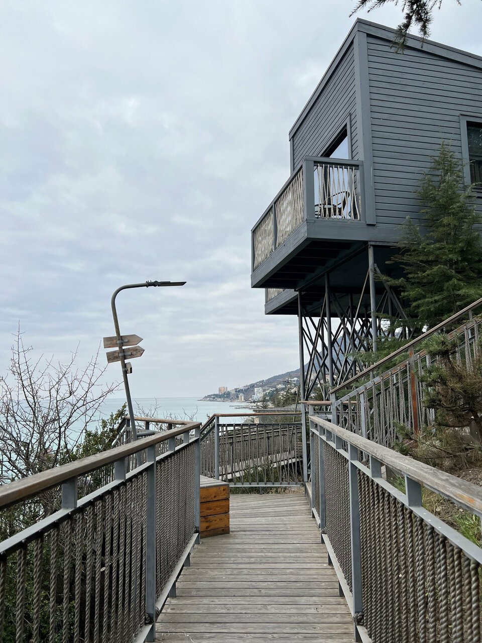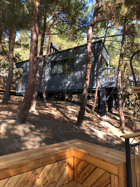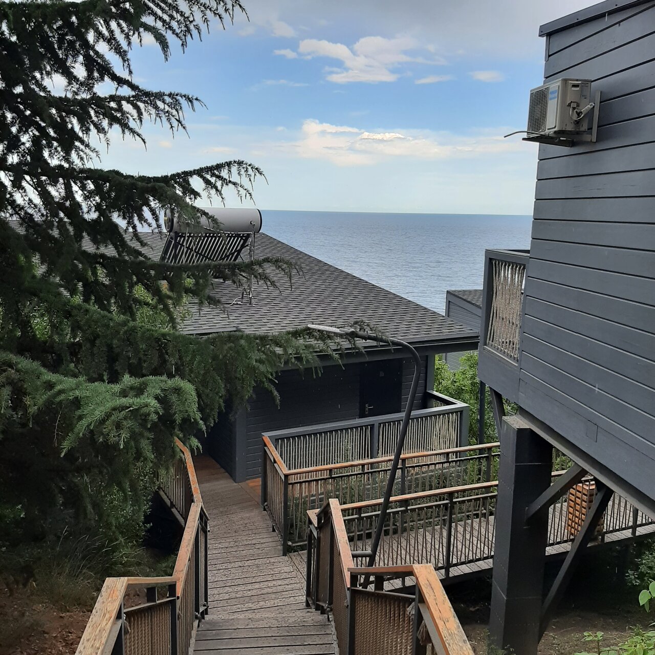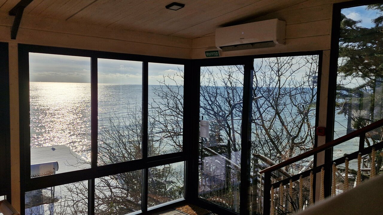 Кайф!отдыхаем сейчас в майские и.. Классно в самом домике : чисто, все новое, прекрасные панорамные окна и балкон. Своя сауна( с панорамным окном и видом на море) , зона отдыха с шезлонгами. Есть только одна особенность: нужны крепкие ноги, так как домики на горе и соединены лабиринтами лестниц. Накачаетесь)) мы сейчас в процессе )))