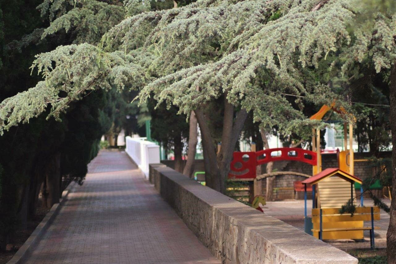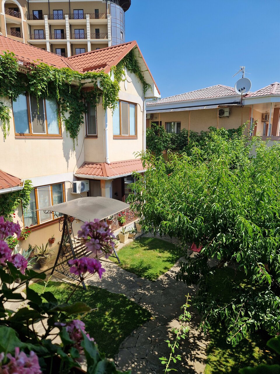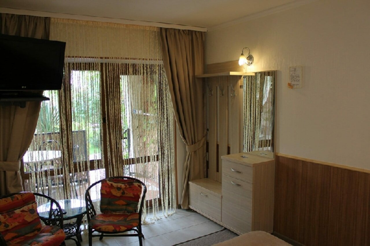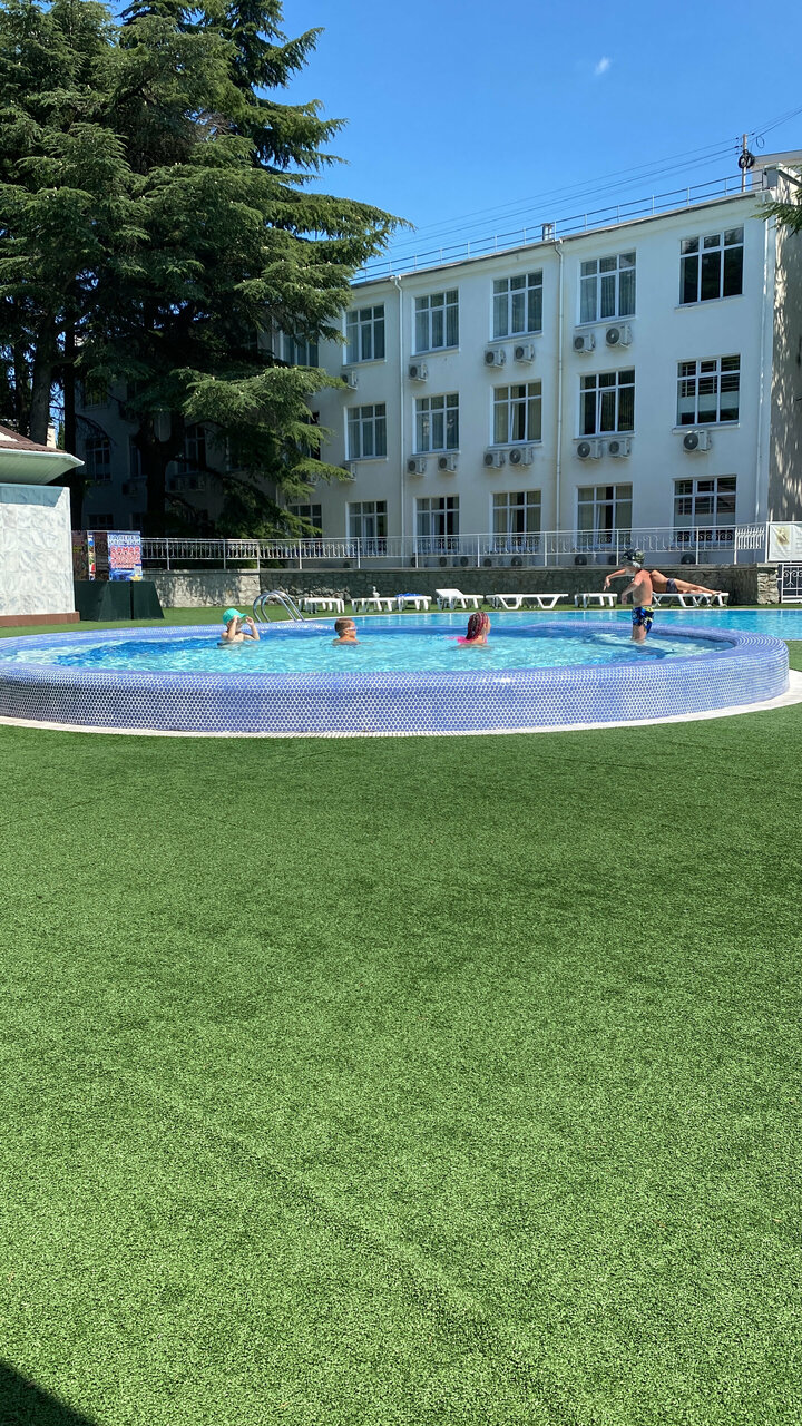 Отдыхали уже 3 раза. Чисто, уютно. В одном дворе несколько квартир, но ощущение, что живешь уединенно из-за расположения квартир и большого количества зелени: деревья, цветы, плетущийся декоративный виноград, несколько зон отдыха: свои балконы, в разных уголках качели и лежачки Даже два детских спортивных уголка! А также шикарный большой стол под навесом и крутой каменный мангал! Есть возможность гулять по территории санатория в зелени и тишине. А если захочется активности, в пансионате есть спорт площадки. Из минусов, кому-то может показаться наличие большого количества лестниц, при возвращении с моря, но это кому-как. Мне нравится нагрузка, поэтому для меня это плюс. А еще с некоторых номеров — шикарнейшие виды с балкона, огромные окна с видом на зелень и птицы — громко поющие, как будто без перерыва 🙂 Есть столовая рядом, готовят хорошо, но это в сезон. А еще замечательные добрые хозяева! Хочется вернуться сюда снова!