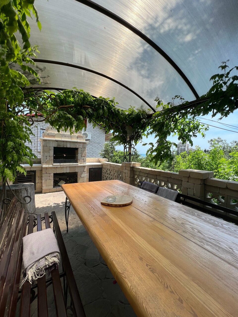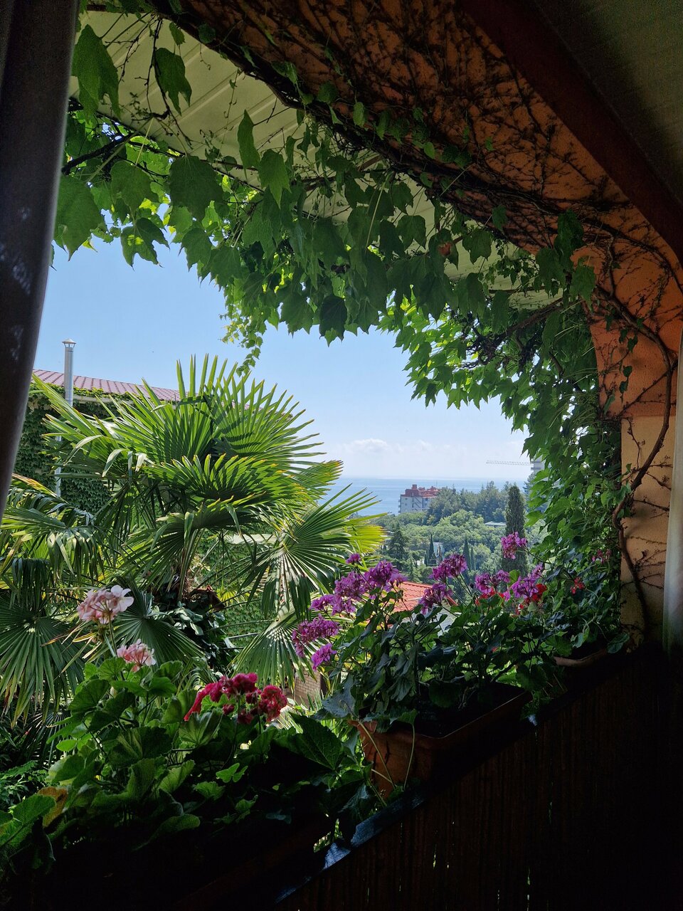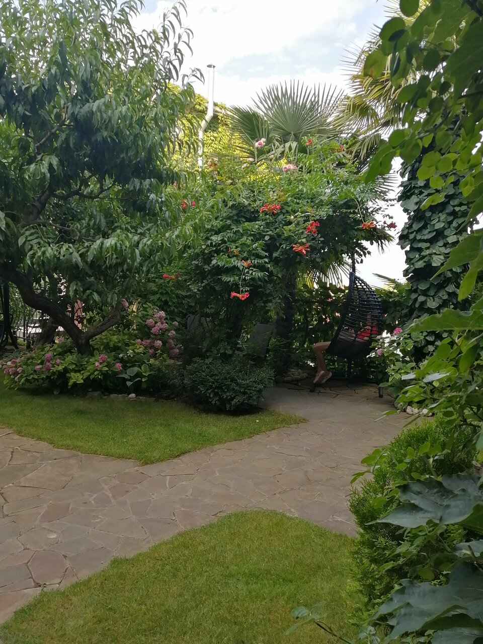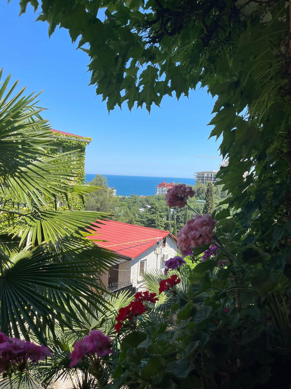Выбирали жильё по отзывам здесь и не прогадали! Двухкомнатные апартаменты на втором этаже с красивой цветущей террасой, где можно затракать и наслаждаться прекрасными видами на красивейший сад и море! В номере чисто, есть всё, что может понадобиться на отдыхе! На территории есть зоны для отдыха, детская площадка, небольшая спортплощадка и зона барбекю, где можно пожарить мясо и насладиться им. До пляжа нужно спускаться по лестницам, обратно тяжелее, но можно отдохнуть на территории санатория Алушта. Также можно гулять на территории санатория. А за небольшую плату купаться в бассейне, на гольфкаре доехать до пляжа санатория и пользоваться лежаками. Хозяева Иван и Светлана очень радушные и гостеприимные! Всё покажут и расскажут, в любой момент на связи. Почти всё они построили своими руками, с любовью и теплотой в каждом кирпичике и к каждой веточке или цветочку Будем в Алуште ещёраз, обязательно остановимся здесь же! В Гармонии с гармонией к себе и природе!