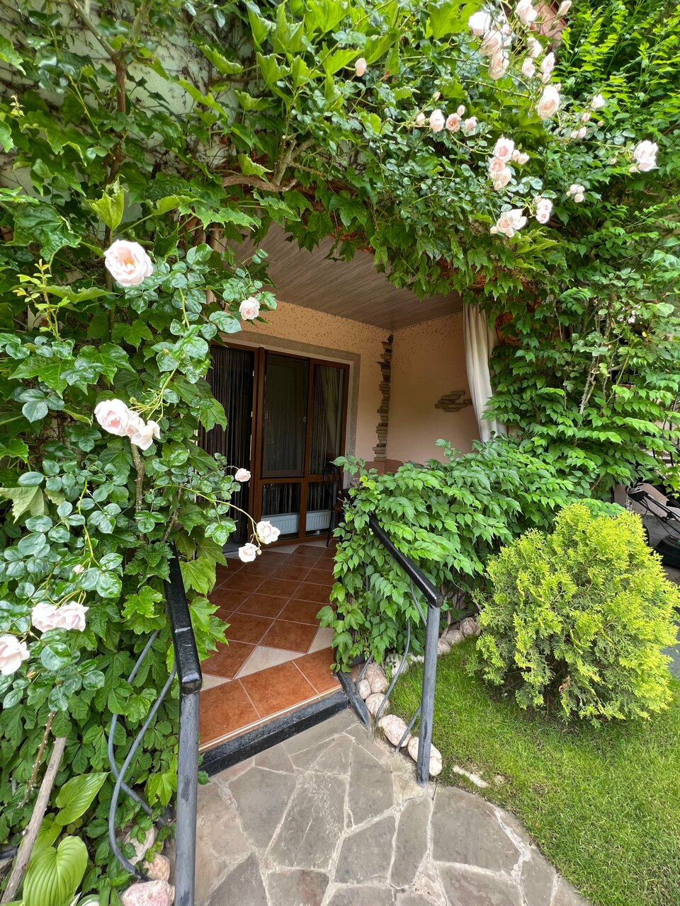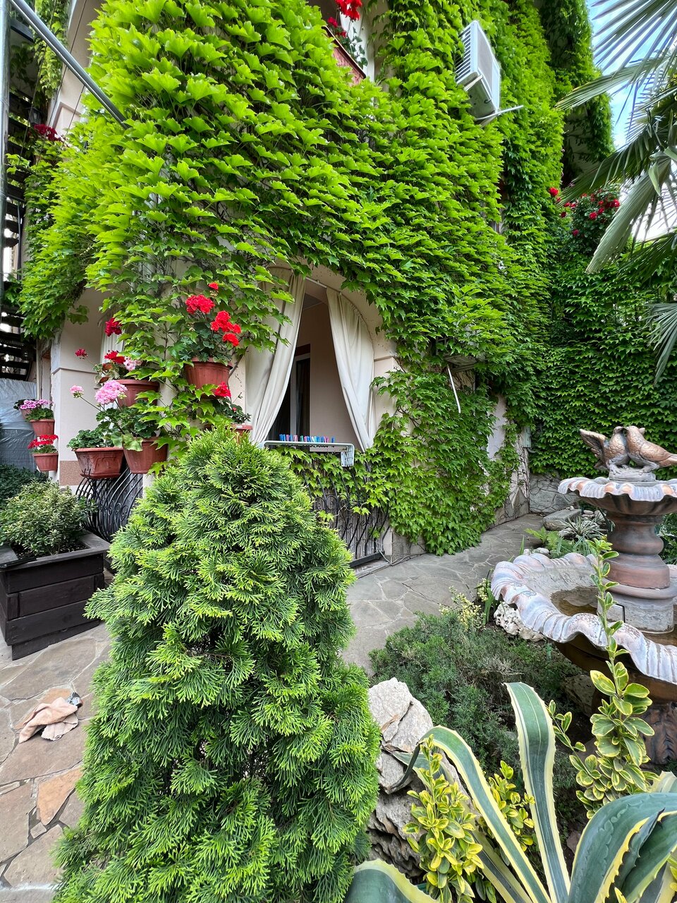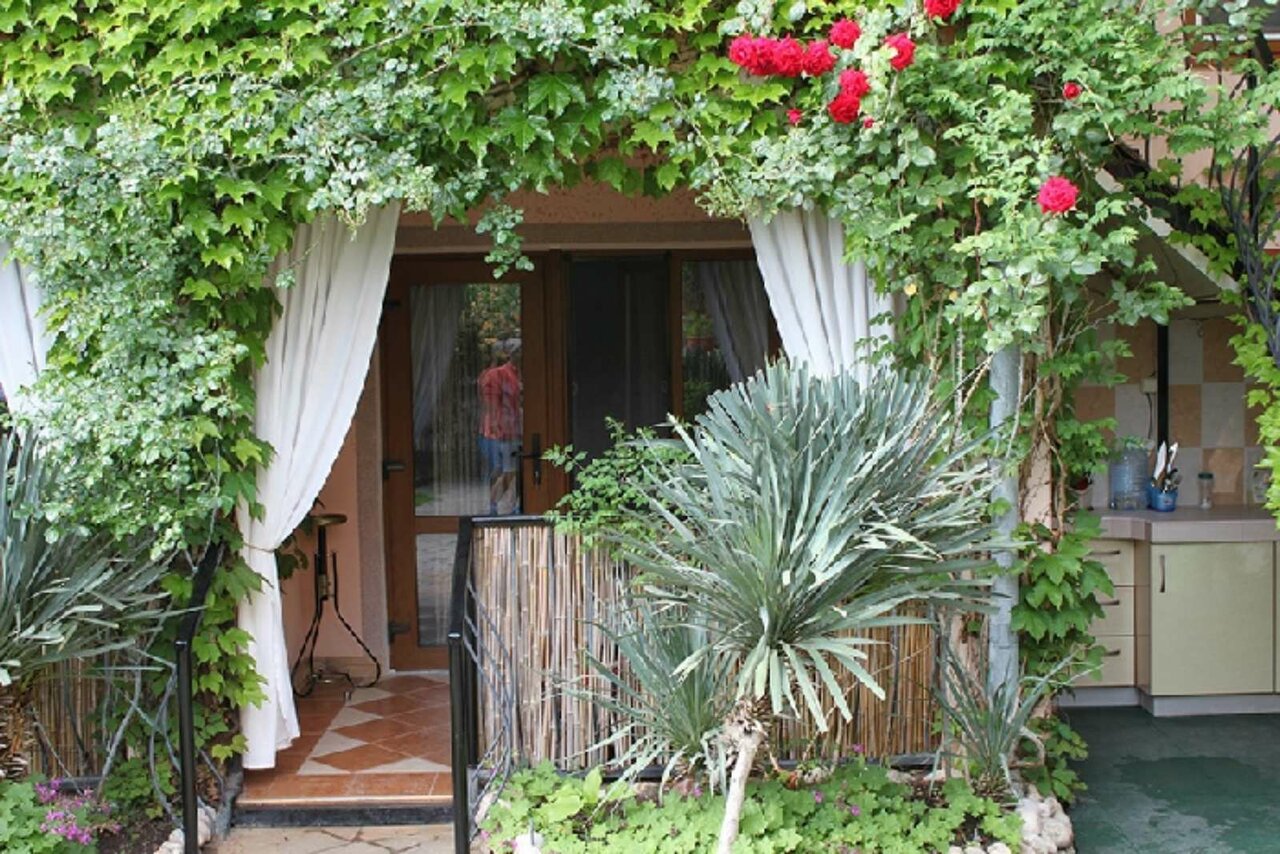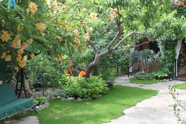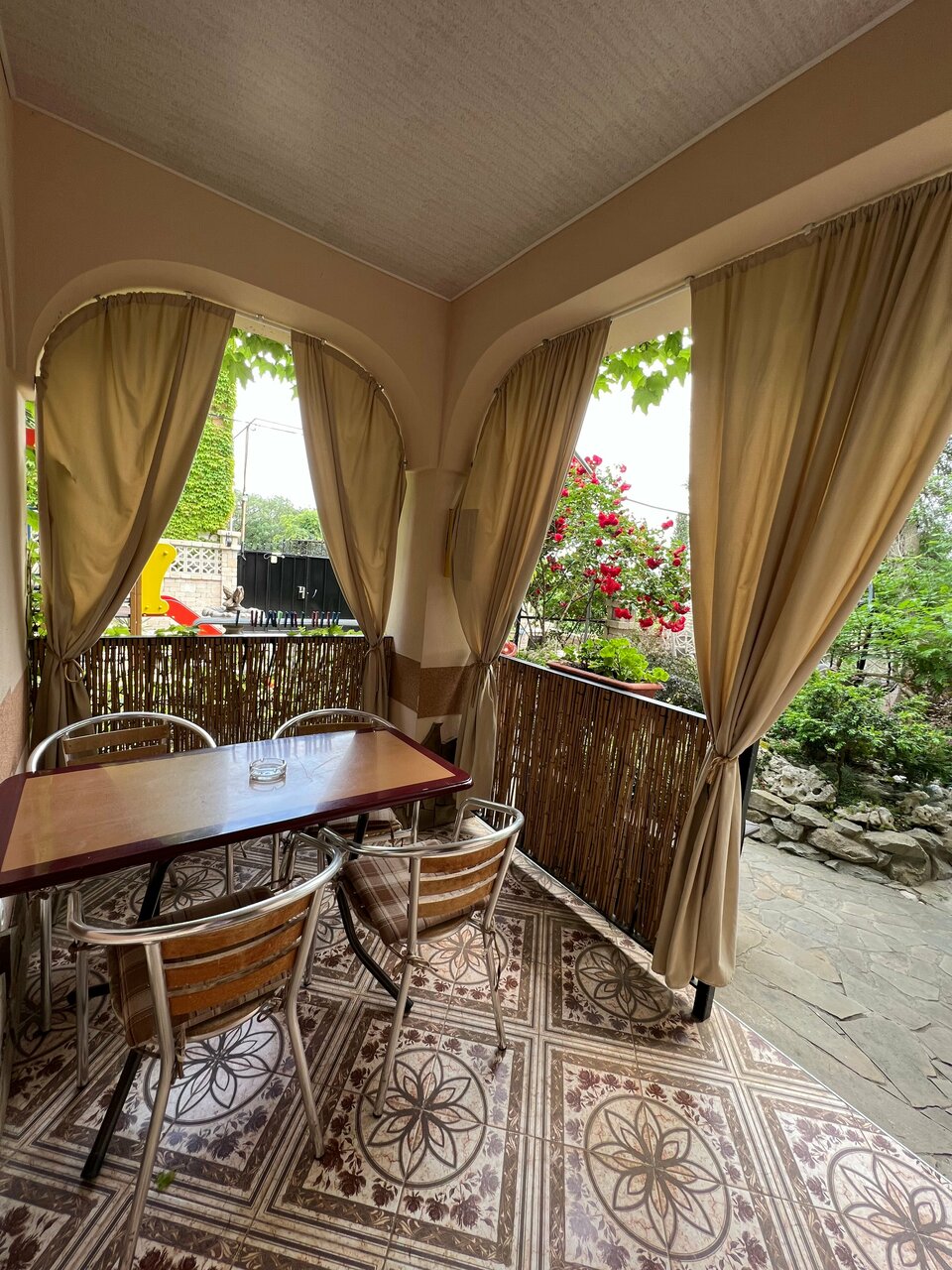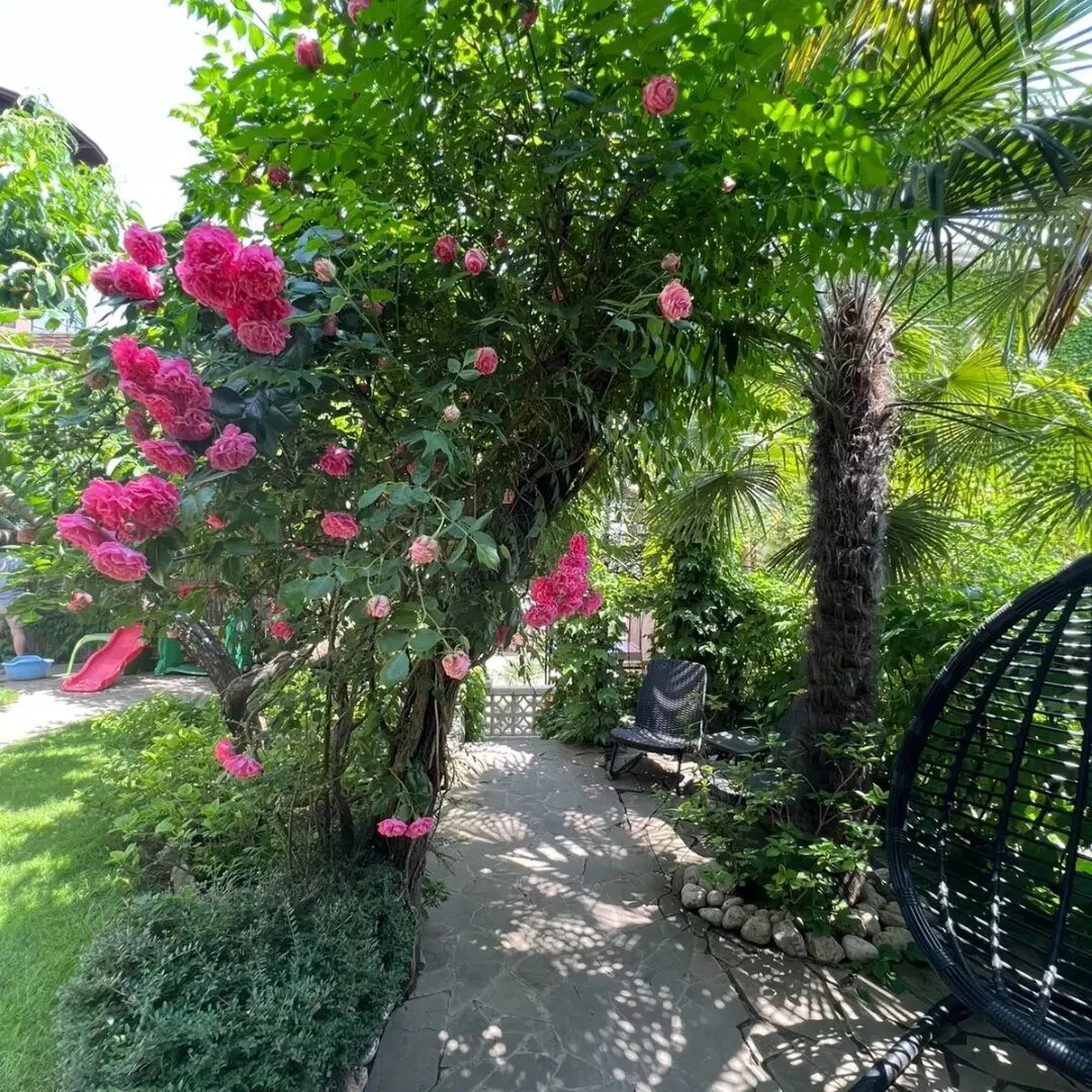 Выбирали жильё по отзывам здесь и не прогадали! Двухкомнатные апартаменты на втором этаже с красивой цветущей террасой, где можно затракать и наслаждаться прекрасными видами на красивейший сад и море! В номере чисто, есть всё, что может понадобиться на отдыхе! На территории есть зоны для отдыха, детская площадка, небольшая спортплощадка и зона барбекю, где можно пожарить мясо и насладиться им. До пляжа нужно спускаться по лестницам, обратно тяжелее, но можно отдохнуть на территории санатория Алушта. Также можно гулять на территории санатория. А за небольшую плату купаться в бассейне, на гольфкаре доехать до пляжа санатория и пользоваться лежаками. Хозяева Иван и Светлана очень радушные и гостеприимные! Всё покажут и расскажут, в любой момент на связи. Почти всё они построили своими руками, с любовью и теплотой в каждом кирпичике и к каждой веточке или цветочку Будем в Алуште ещёраз, обязательно остановимся здесь же! В Гармонии с гармонией к себе и природе!