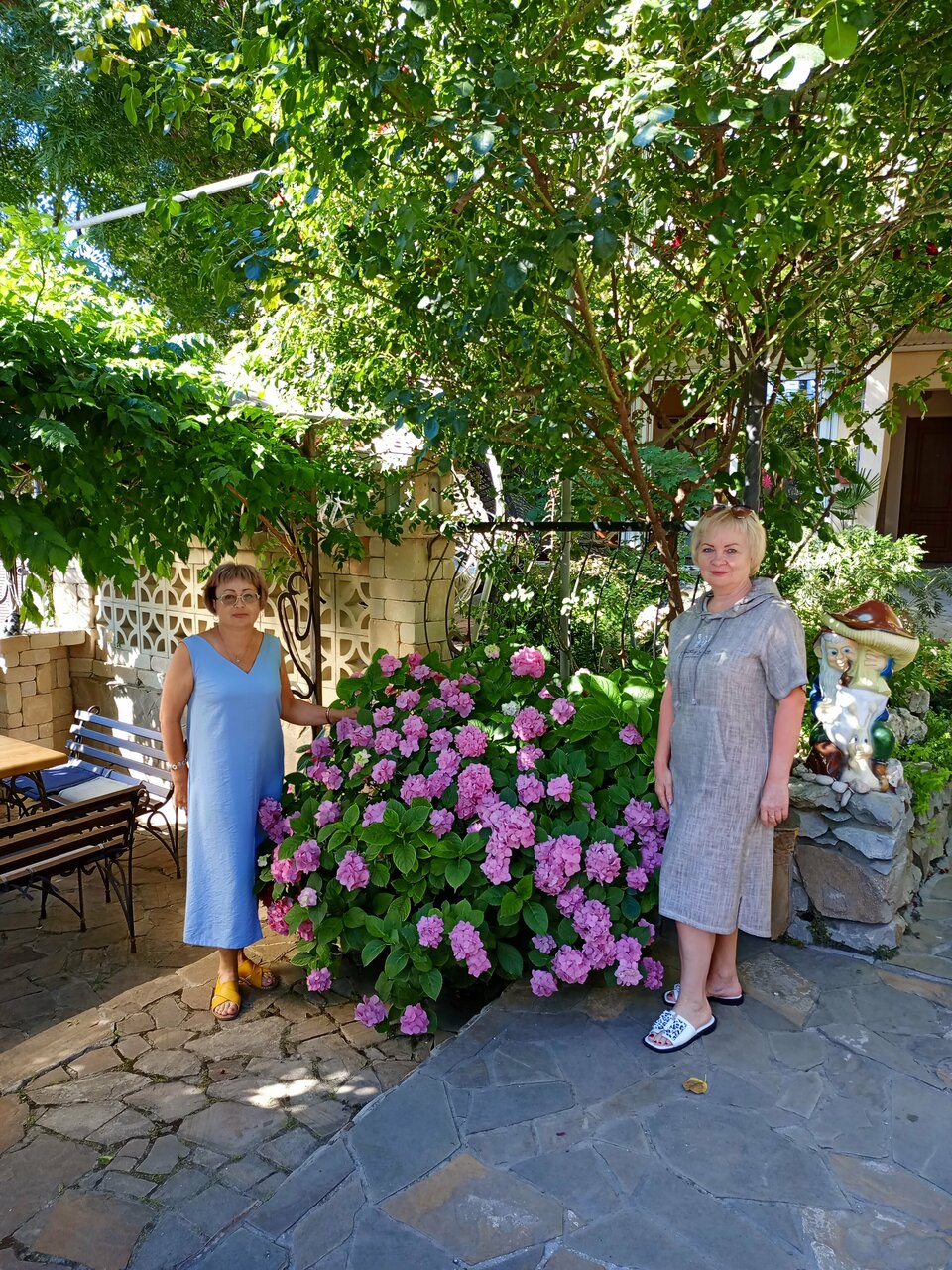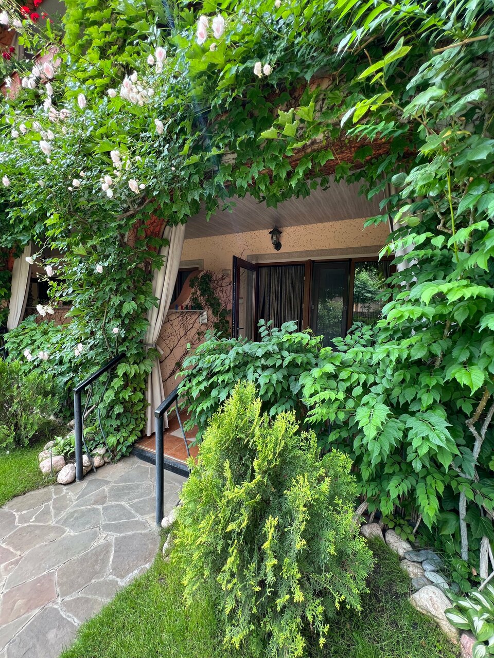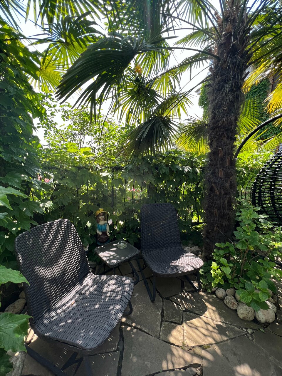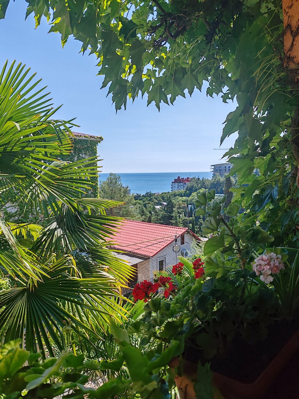Выбирали жильё по отзывам здесь и не прогадали! Двухкомнатные апартаменты на втором этаже с красивой цветущей террасой, где можно затракать и наслаждаться прекрасными видами на красивейший сад и море! В номере чисто, есть всё, что может понадобиться на отдыхе! На территории есть зоны для отдыха, детская площадка, небольшая спортплощадка и зона барбекю, где можно пожарить мясо и насладиться им. До пляжа нужно спускаться по лестницам, обратно тяжелее, но можно отдохнуть на территории санатория Алушта. Также можно гулять на территории санатория. А за небольшую плату купаться в бассейне, на гольфкаре доехать до пляжа санатория и пользоваться лежаками. Хозяева Иван и Светлана очень радушные и гостеприимные! Всё покажут и расскажут, в любой момент на связи. Почти всё они построили своими руками, с любовью и теплотой в каждом кирпичике и к каждой веточке или цветочку Будем в Алуште ещёраз, обязательно остановимся здесь же! В Гармонии с гармонией к себе и природе!