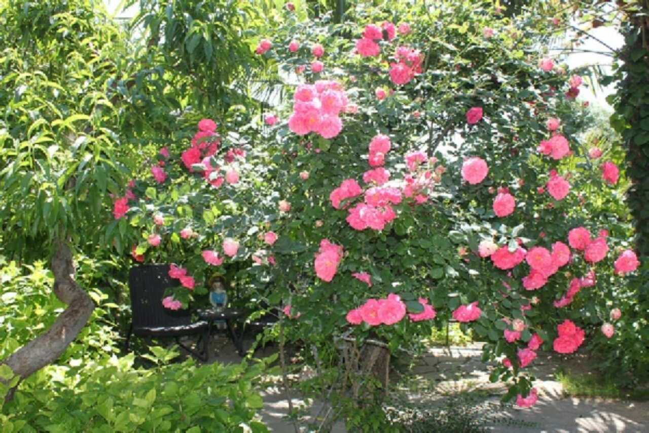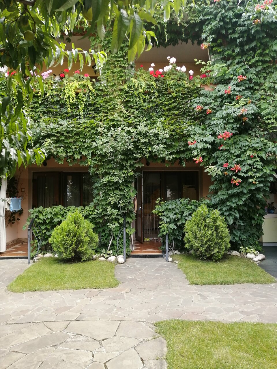 - Ухоженная, зелёная территория с множеством растений.