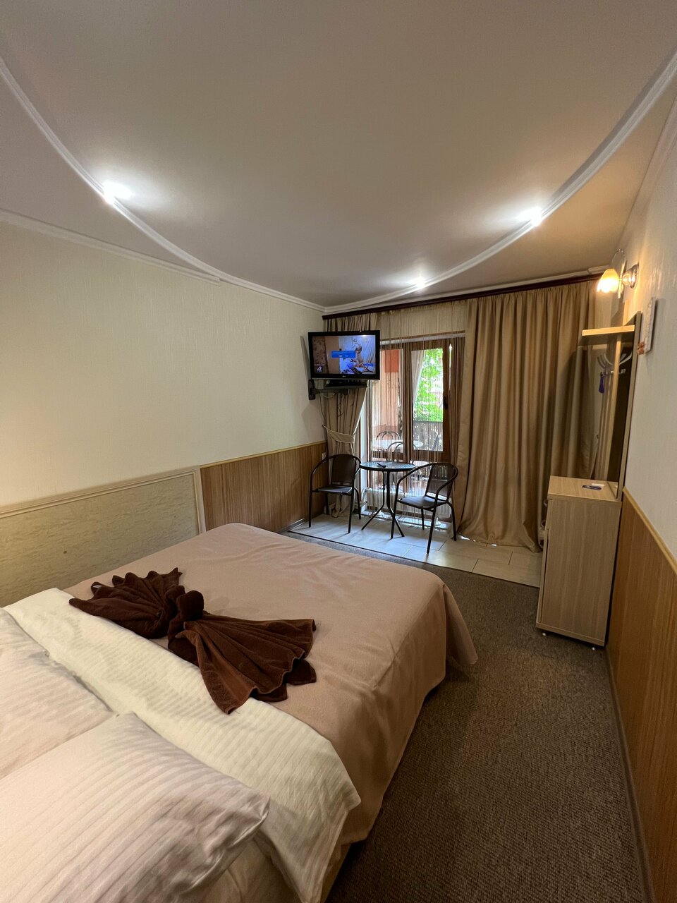чисто, уютно, красиво очень-очень добрая администраторша :з до моря идти недолго, и через прекрасный парк санатория работают телевизор и кондиционер, номер постоянно убирали 🙂
