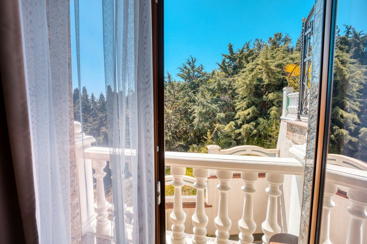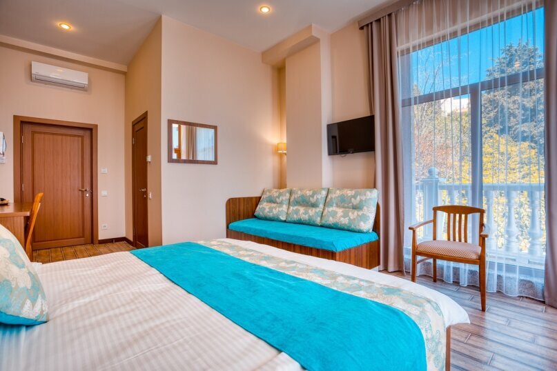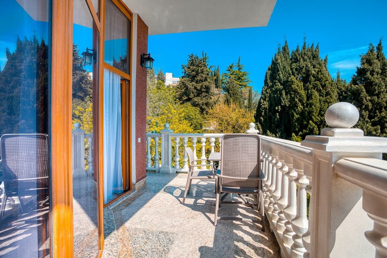 Корпус 'А'.Лучшая категория номеров из представленных!Большой балкон с потрясающим видом на море, горы и парк!В номере 1 двуспальная кровать и 1 тахта (в которой используется полноценный ортопедические матрас).