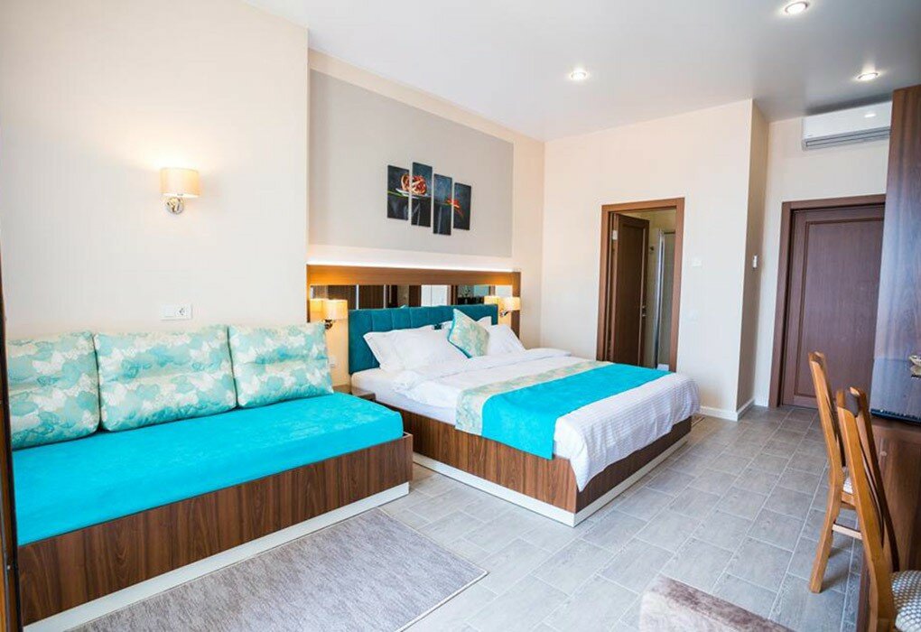 Очень приятное место для отдыха! Расположено в тихом районе, но до всех активностей на набережной рукой подать. В номере все продумано до мелочей: есть гладильная доска, сушилка, тазик, посуда. Очень удобная кровать, большие балконы. Отдохнули с комфортом. Особая фишка: спа-зона.