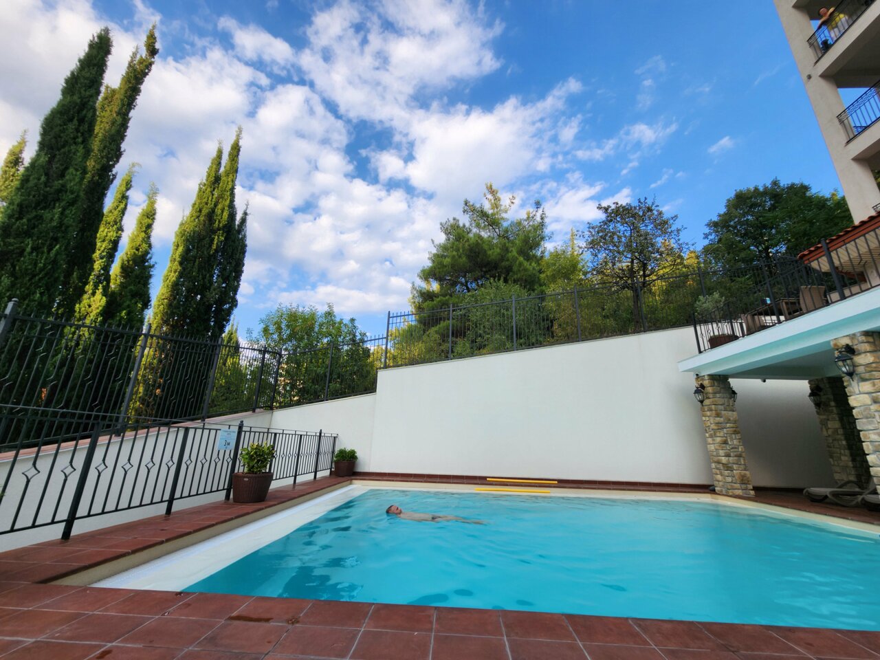 Новый и ещё не совсем оббившийся уютом lifestyle Hotel расположился в тихом месте на хвосте набережной Алушты. Новый. Чистый. Аккуратный и очень даже стильный, он идеально бы жил в Италии или Франции. Отличные номера, со всеми удобствами и функционалом, шикарный WiFi отеля и отзывчивый ИТ специалист Максим дали возможность проводить конф-коллы по VPN (это Крым, детка) Отличный, но необразованный профессионально стафф научится.. тк мы приехали когда отелю был 1 месяц. Рядом шикарные теннисные корты (!) Вообщем, для Крыма. Алушты и ЮБК — цена/качество на твёрдую 5. По европейским меркам — это 4****
