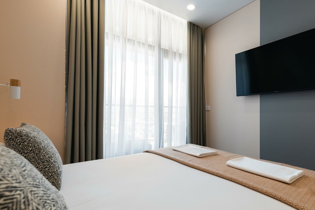 Комфортные двухкомнатные апартаменты в элегантном дизайне, каждый с балконом и видом на город. Отдельная спальня с двуспальной кроватью и пространство гостиной с диваном (раскладывается) и кухонной, обеденной зоной.Площадь от 52 до 63 кв. м.