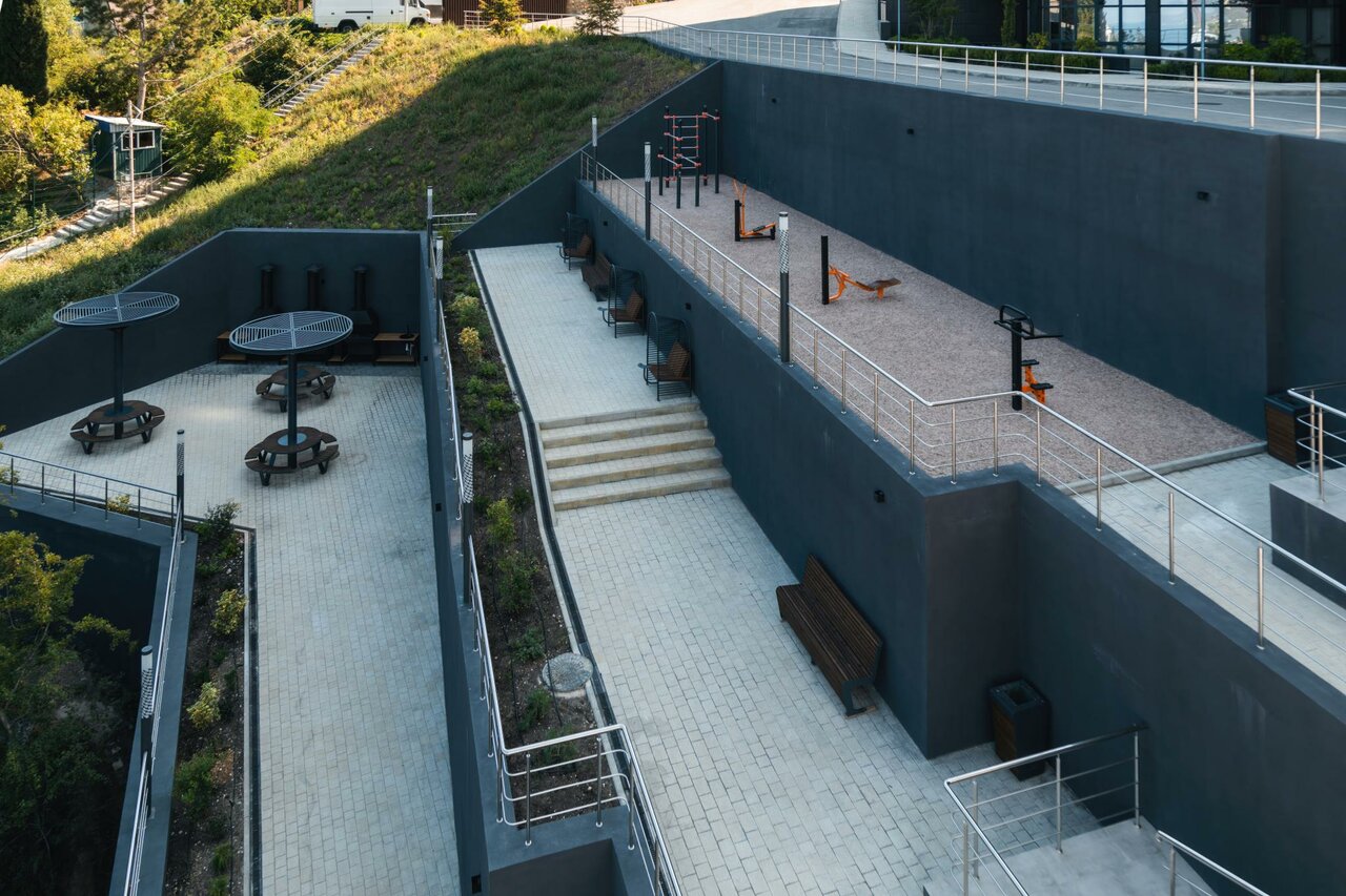 Прекрасное место, замечательные современные апартаменты с современным ремонтом. Переехали сюда из апартов, которые снимали у собственника — за три дня там устали от дешевого ремонта — было убого,не удобно и дороже, чем предлагает отель. В итоге задержались тут на два месяца, получили огромное удовольствие от отдыха. До моря нужно пройтись, но это приятная и полезная прогулка. Приятно благоустроена территория — зоны отдыха, тренажеры, мангалы, гамак очень атмосферно! Ну а набережная профессорского уголка в Алуште — одно из любимы мест. Обязательно вернемся сюда!