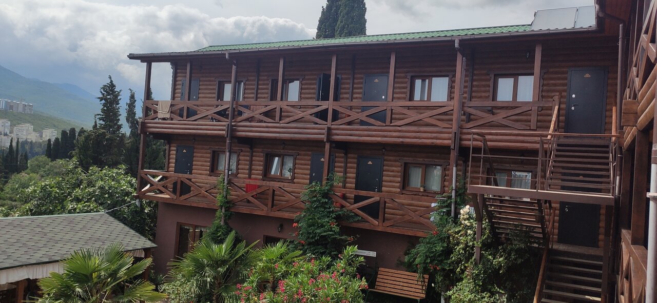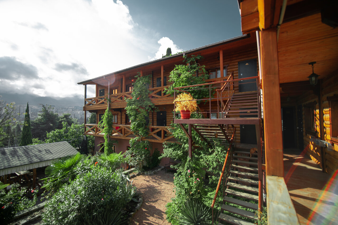 Свежий горный влажный воздух, удаленное расположение от шумных туристических мест, солнце, море — просто супер! Сервис, чистота, забота о клиентах — все на высшем уровне. Много зелени как в городе, так и на территории. Есть парковка и мангальная зона. Работает кафе, но, если предпочитаете готовить самостоятельно, есть кухня и холодильник на первом этаже. Интернет, тв с приставкой, кондиционер — все атрибуты современности присутствуют) Спасибо прекрасной Татьяне за душевный отдых! Кстати, с собакой сиба-ину нас приняли в этом месте очень радостно, что большая редкость для Крыма. За это отдельный респект прогрессивному гостевому дому!