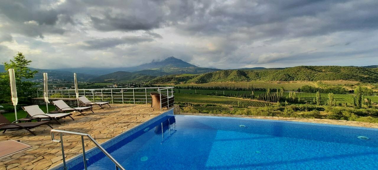 Лучшее место для душевного отдыха с семьей. Вид на горы и долину здесь просто невероятный. Особенно когда плаваешь в бассейне.