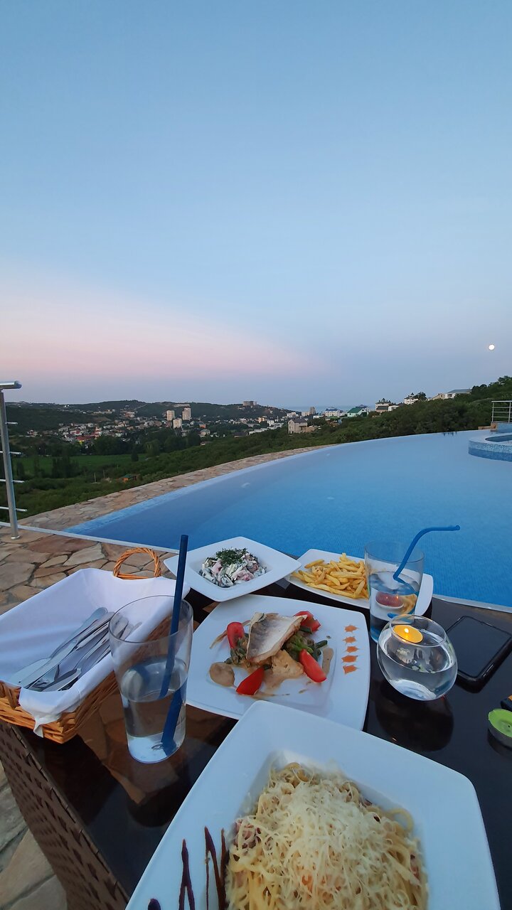 Отлично отдохнули. Были одни сутки. Заселение разрешили раньше. Смутило что нет кулера и воду можно только купить у них. Чайник не предусмотрен, но по просьбе выдали. Так же всю необходимую посуду. Номера уютные, новые, просторные. Очень приятные люди работают. Бассейн и вид это просто шикардос. Хотелось бы вместе с друзьями здесь отдохнуть летом. Были в сентябре. Прикольно что можно кушать прям у бассейна, есть зона барбекю и детская площадка. Все в целом хорошо.